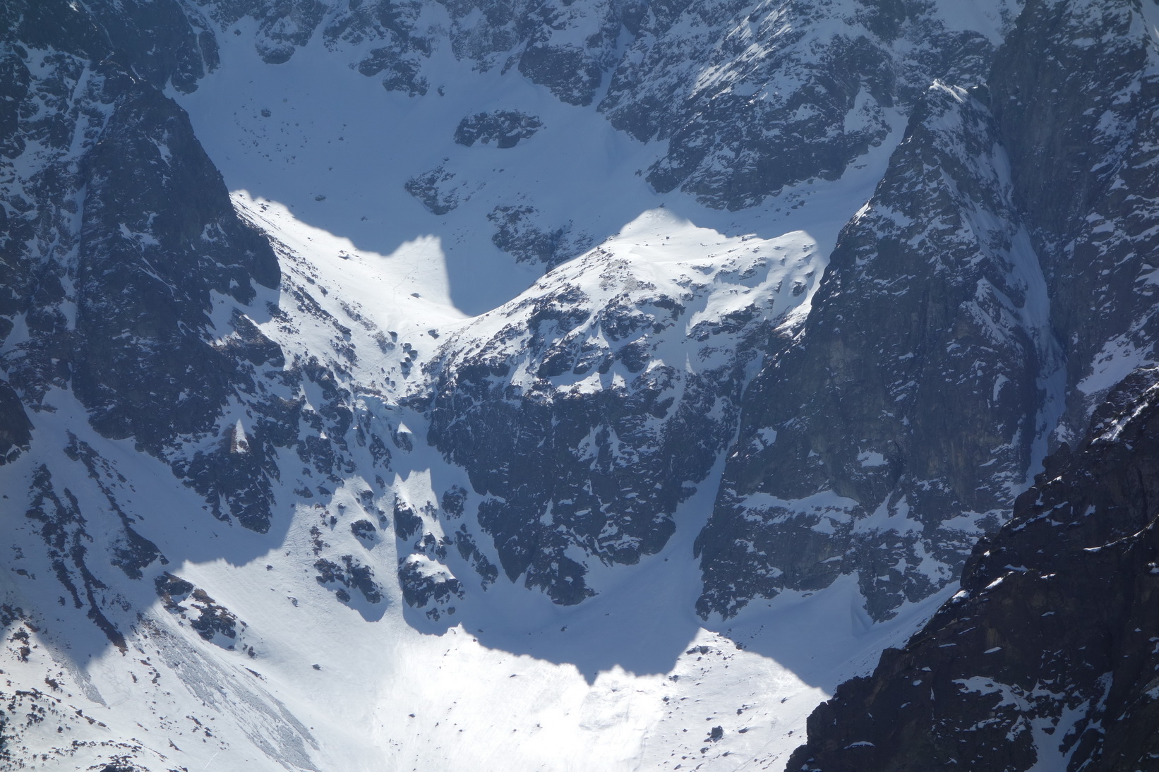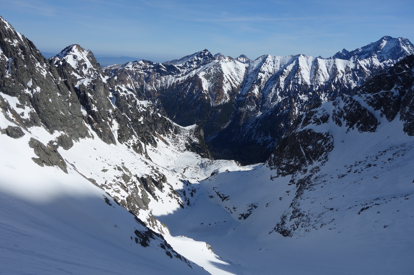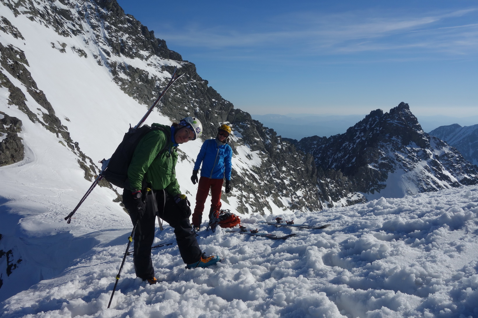 Začnem rovno zjazdom z Váhy. O 9,30 severovýchodný svah ponúka perfektné podmienky a aj po prechode do tieňa je lyžovačka stále veľmi príjemná. Pokračujeme v tomto trende až k Ťažkému plesu. Sme maximálne spokojní a vieme, že výstup na Mlynára, ktorý sa už od rána kúpe v slnečných lúčoch nebude zadarmo a lyžovačka nebude vo firne ale v kejde. Nevadí. Sme uchvátení výhľadmi na severné steny Ganku, Vysokej, Gerlachu a celkovo úplne iným pohľadom na hlavný tatranský hrebeň.