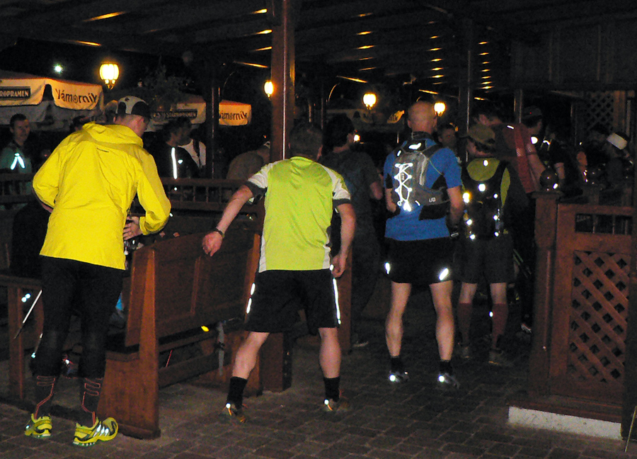 Takto pred rokom som zbalený a nachystaný ešte 15 minút pred odchodom vlaku len smutne sledoval meteoradar a rozhodoval sa. Slabý a chorľavý som sa nakoniec neodvážil do blata a dažďa, lebo som si povedal, že za sucha, ak by mi došlo, hocikde v lese sa aj na pár hodín zložím, ale takto? Tento rok ale počasie ako na objednávku, traja zmrznutí odtiahli, obloha jasná, mesiac pred splnom, tak si veselo fičím vlakom do Považskej Bystrice k Námorníkovi, kde je štart o 23:00. Aj prezentácia – a zaujímavé, že väčšina prichodiacich nejde najprv k nej, ale k baru.