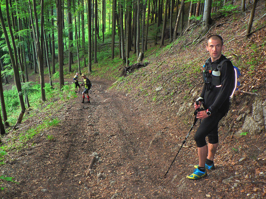 Na Bradle len čumím, že beriem nálepku prvý. Kde je vedúca trojka? Aj keď kontrolóri spomínali, že tí tiež chceli na Rudne zakempovať... Lenže ani cestou nazad dole nestretám nikoho, tak už tuším, že asi zaútočili na K5 z opačnej strany. Tak sa až do cieľa obzerám, či ma dáki ultrachrti ako Roman B. alebo Patrik H. nedobiehajú. Lebo od únavy zakopávam už aj o vlastný tieň a cieľová rovinka (takých 10km hehe) je prevažne môj obľúbený rozhicovaný asfalt. Keby aspoň z kopca!!!