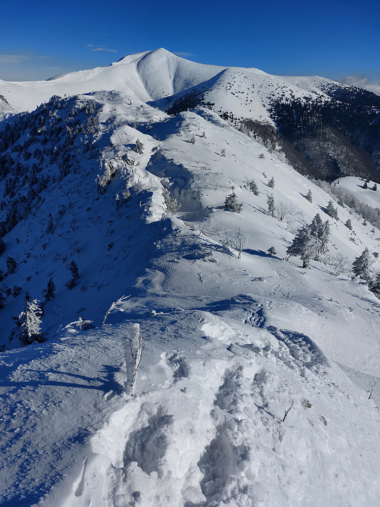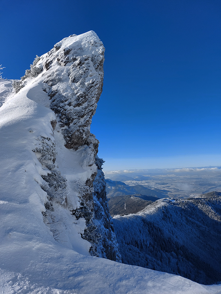 Je to jednoduché – po vianočných dažďoch poriadny mráz a hrebene našich Fatier sú hneď vhodnejšie pre korčule ako pre lyže. Medzi stromami síce vietor niečo sypké naukladal, ale hrebeňa Krivánskej Malej Fatry medzi Suchým a Osnicou sa to samozrejme netýka. Ten je teraz fajný na pobehovanie v maratónkach, citlivejšie povahy dajme tomu, že nasadia mačiatka. Nevytiahol som ich ale, drsné to bolo a parádne to držalo. To medzi Suchým a Malým Kriváňom, inde asi podobne.