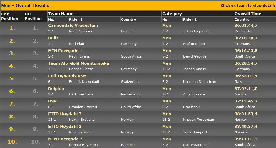 Víťazmi tohto ročníka sa stali profíci z teamu Cannondale Vredestein: Roel Paulissen (Belg.) a Jakob Fuglsang (Dán.) Výsledky sú v galérii.
