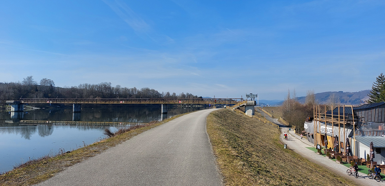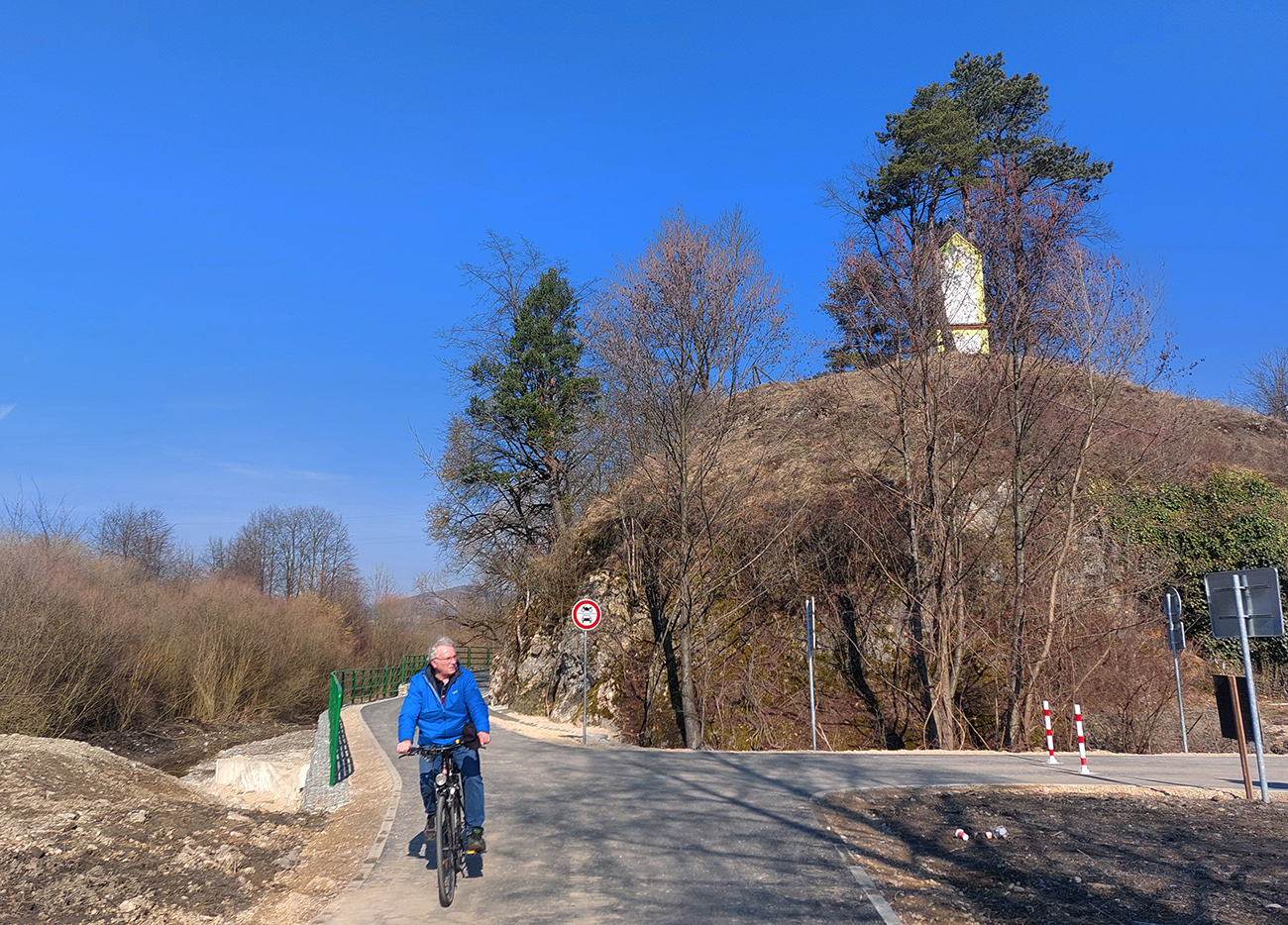 Dôvod mám aj ten, že len nedávno spojazdnili nový úsek cyklotrasy z Nezbudskej Lúčky do Varína, takže vodné dielo sa dá obísť komplet po cyklotrasách, idem vyskúšať. Takže najprv vynovený mostík cez Váh. Od neho cyklochodník po pravom brehu fasa, len slovenská technomaniacka klasika, absolútne necitlivá ku prírode – padlo niekoľko stoviek metrov brehových porastov. Namiesto nich šutrami spevnený breh. Sme proste nepoučiteľne hlúpi.
