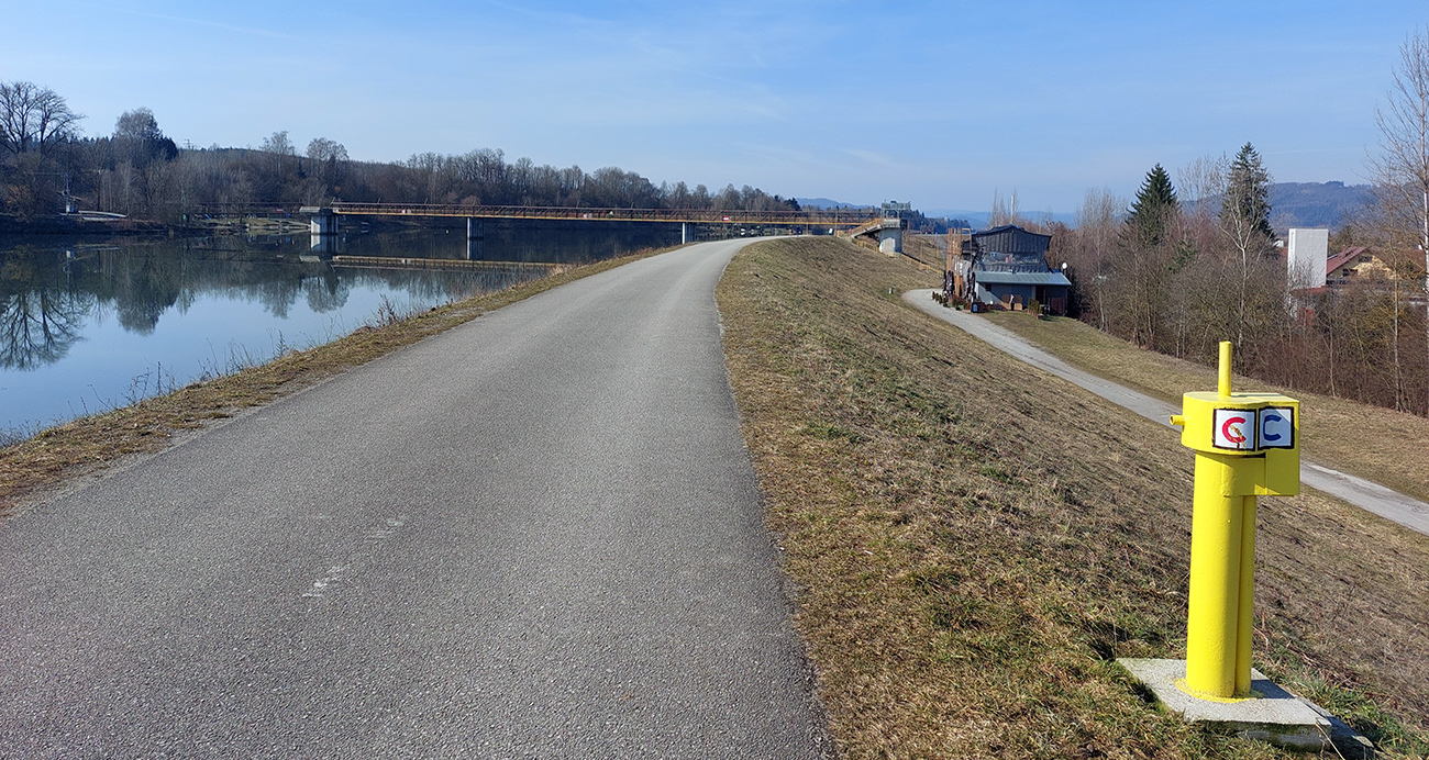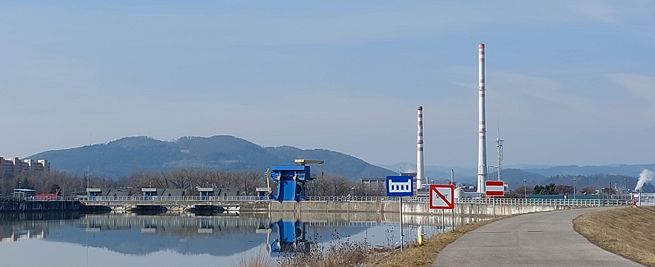 Potom už nekonečné roviny popri vode, s rastúcimi továrenskými komínmi v diaľke. A hustnúca premávka – všeeeetci sú tam, lebo je konečne príjemne teplo a ešte aj nedeľa. V lete budú na opačnej strane, lebo tam je viac tieňa. Niekde v polovici je možnosť skrátiť si okruh mostíkom na druhý breh, ale samozrejme valím až pod elektráreň.