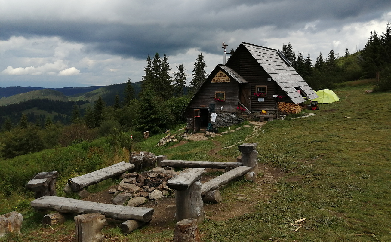 Stanové mestečko rozložené, polievku práve dovárali, pivo a radler mali chladené v studničke, obsluha fajn a aj malé mačky pre spestrenie zážitku sa klbčili okolo chaty. Posedíme, oddýchneme, sledujeme čas a počasie a už to len zjazdíme nazad do Tepličky modrou cez Ždiarsku dolinu a Staníkovo. Treba opatrne, sem tam je mokro z predošlých dažďov, sem tam blato pri kraji, alebo voľné šutre, ale ide to samo z kopca. Len hamovať a kerovať. Cesta prázdna, turistov nikde, no je pondelok, máme aj v tomto ohľade voľné pole.