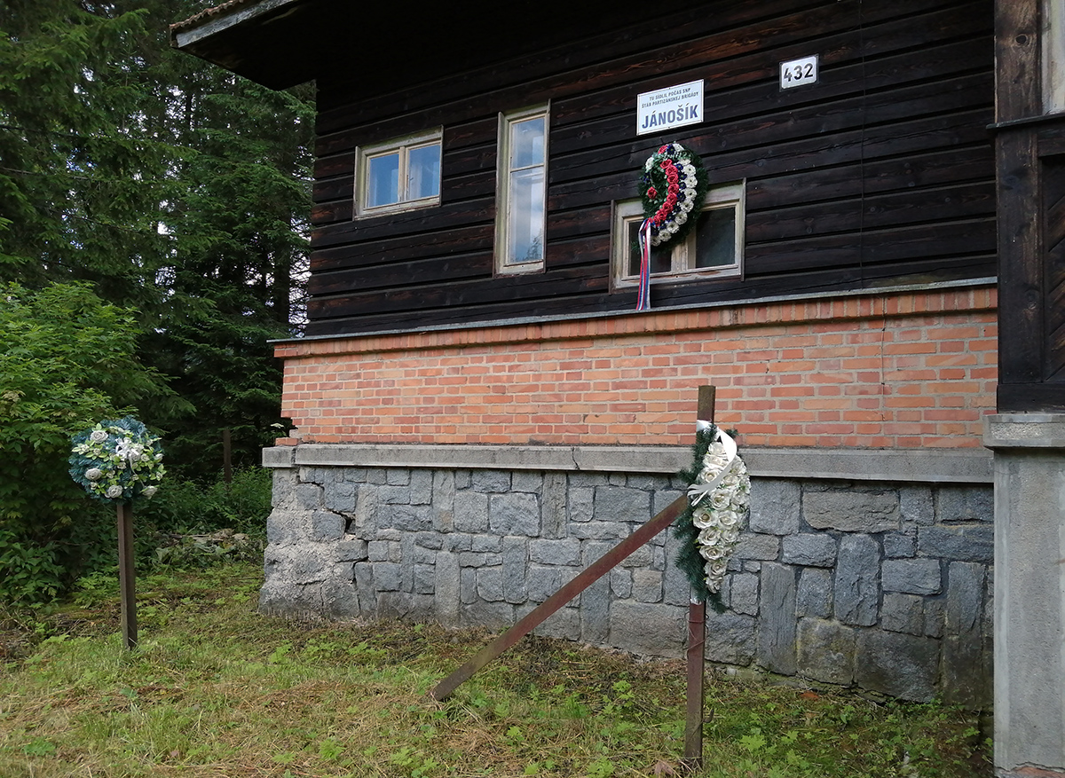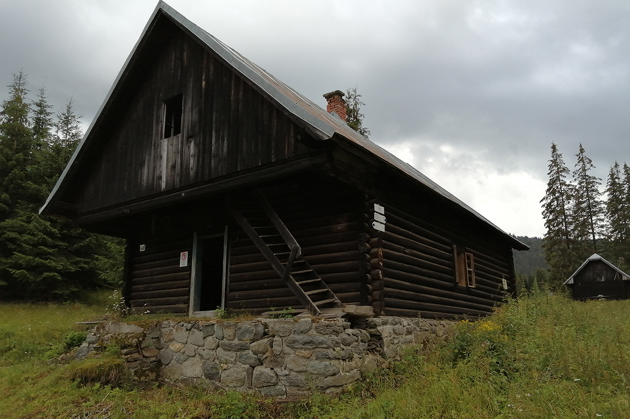 Nad Staníkovom vidíme unimobunku a Suzuki Samurai v terénnej úprave, tak ideme pozrieť čo to je. V bunke miestny lesník a tak sa Peťo dáva do reči, na tieto končiny a históriu je lepší macher ako ja. Preberáme všetko po poriadku, SNP a partizánov, lesnú železničku, a keby nás čas netlačil, v romantizme spomienok aj zabivakujeme. Ja mám času dosť, len Peťo má limit na výlet, tak sa lúčime a pokračujeme dole. Po ľavej ruke krásne strmé svahy, ej tam veru cez meter snehu a dobre by to išlo, len je to na juh, tak v zime opatrne.