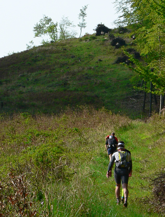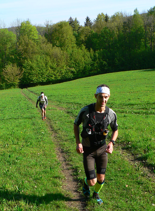 Za Lehotou cez cestu, nálepku od kontrolášov a prevážne po lesných cestách a prevážne do kopca až na Baske. Potom jeden z najkrajších úsekov po rozľahlých lúkach až do sedla Homôľka. Vedúca trojka už len ako rozmazaná trojbodka v diaľke.