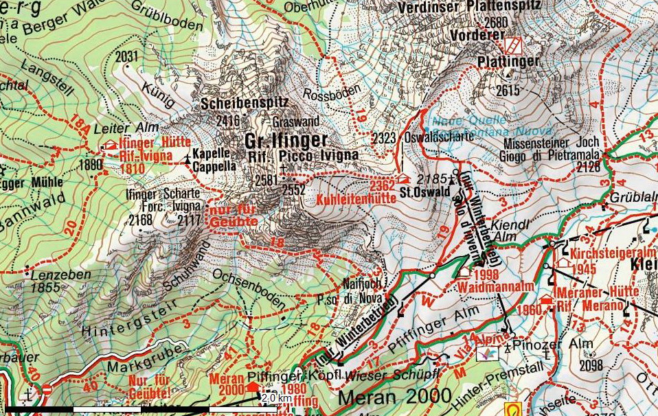 Hovoriť o Ifingeri (2581m.) ako o dominante nad Meranom je nezmysel. Kopce sa tu vypínajú na všetky strany. Len dole po prúde rieky Etsch v smere na Bolzáno je kúsok otvorenej doliny.