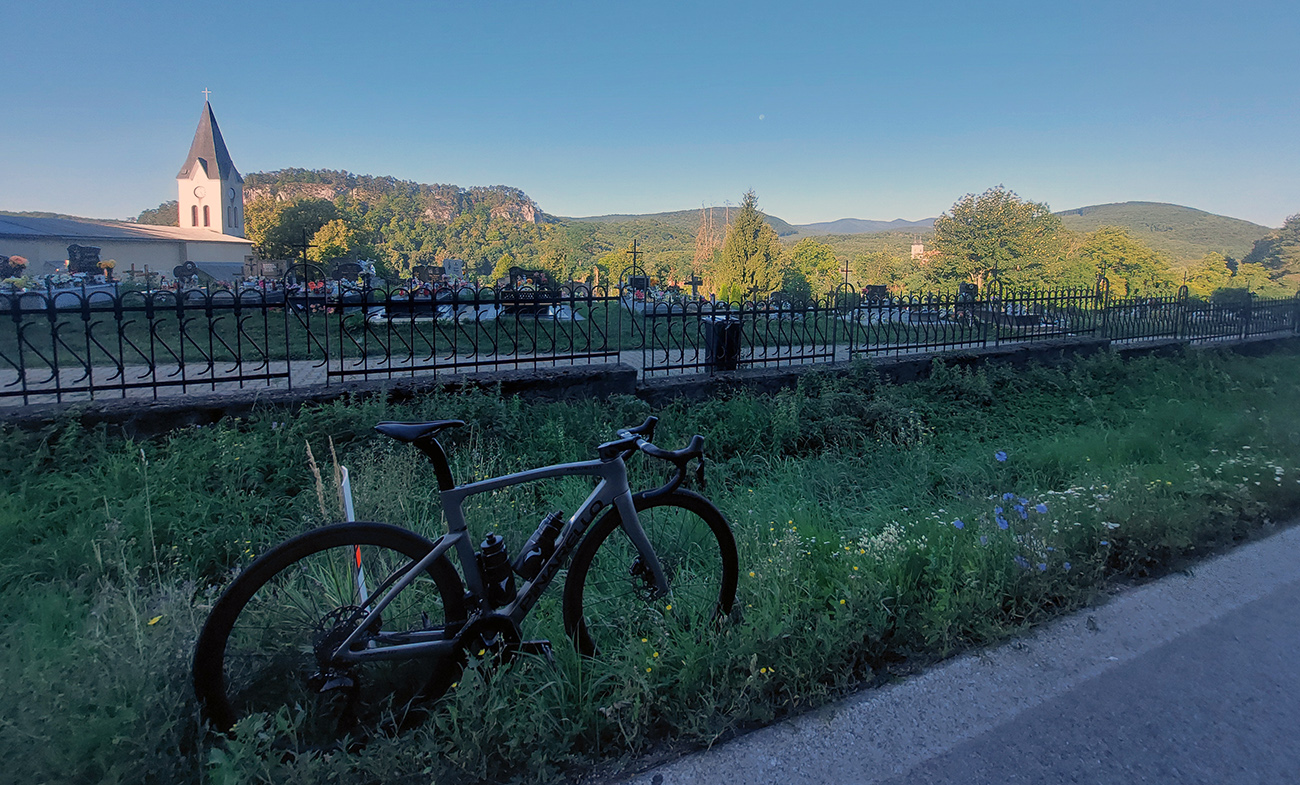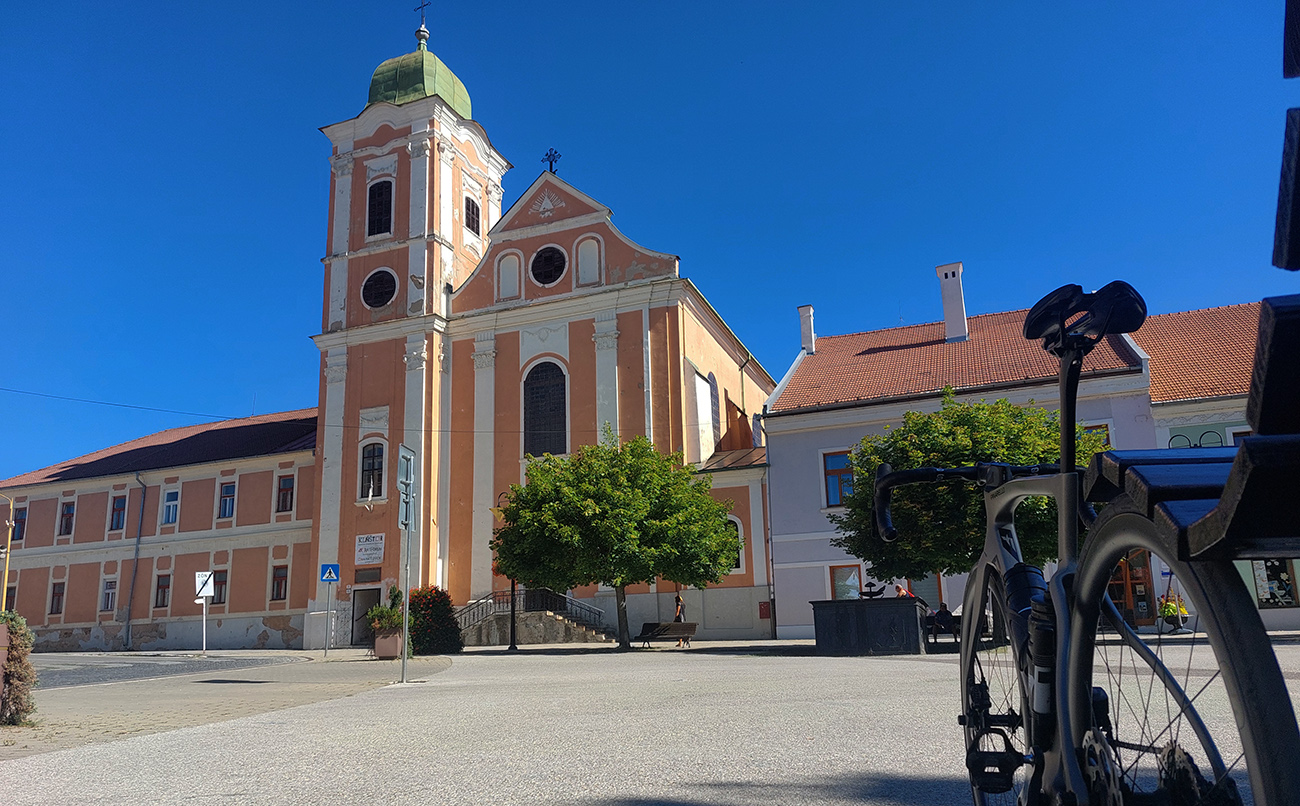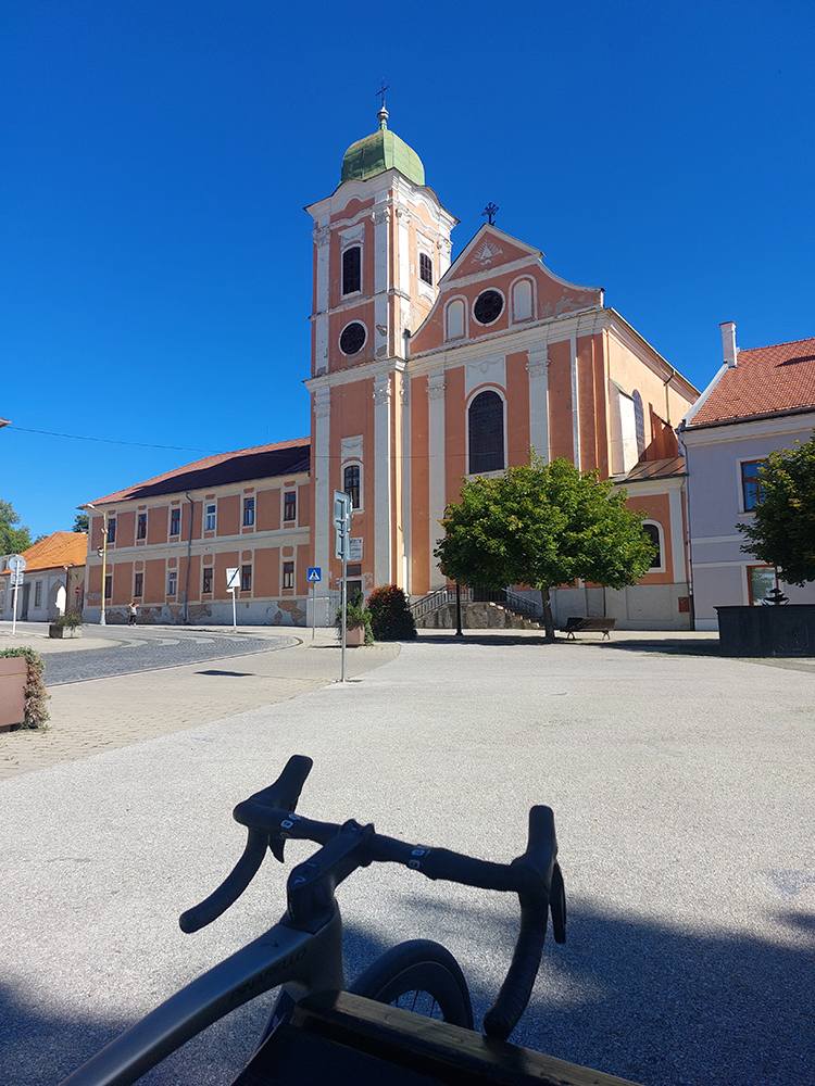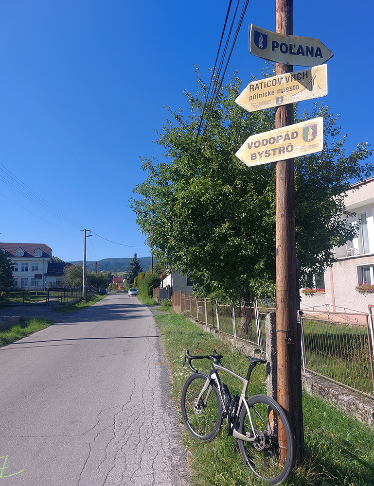 Taaaak, Hriňová! Ešte posledné ozajstné (a poriadne výživné) stúpanie od mliekarne ku kostolu na Raticovom vrchu – dostal sa aj prevod „vyprošťovák“ do akcie, nohy už trochu vädli. A trochu som už kopal do vrtule, čas súril. Tam to poznám, viem odhadnúť, ale keby nastal nejaký problém... Takže aj dole rýchlo, žiadne vozenie, fikot popri detvianskom amfiteátri a cez Dúbravy smer Zvolen.
