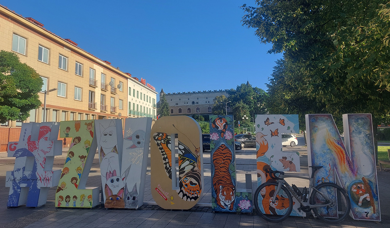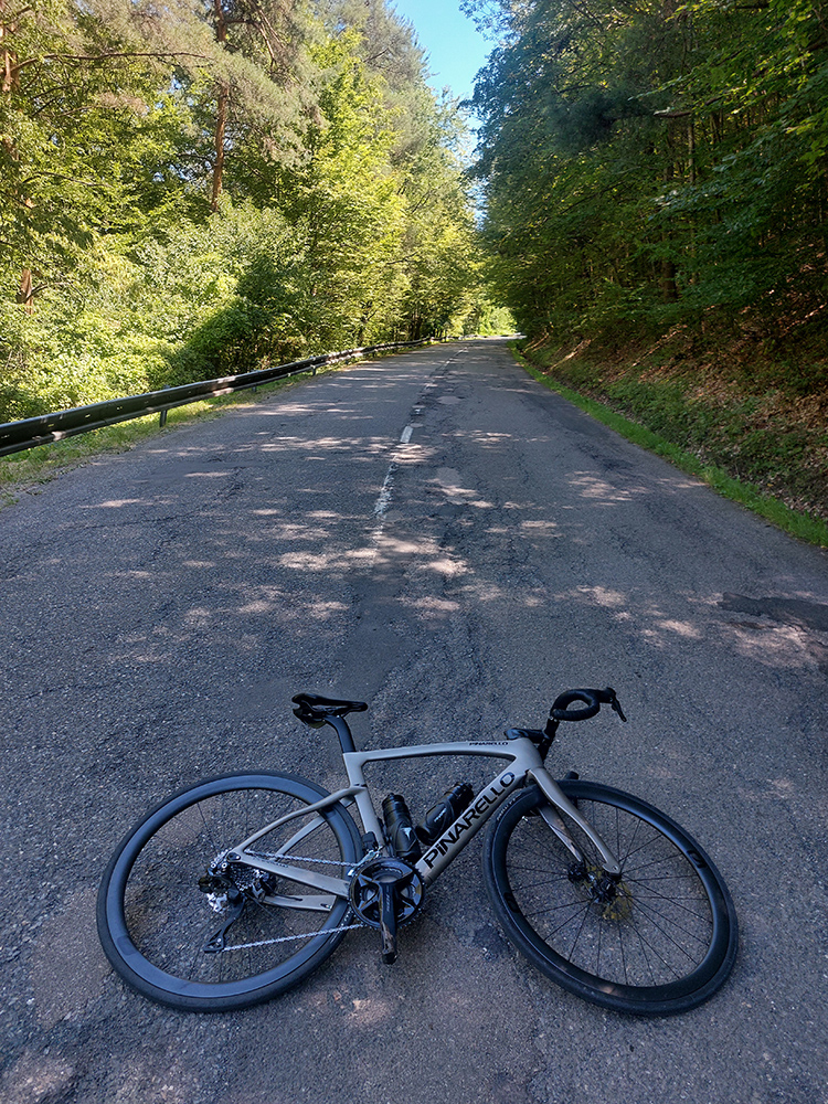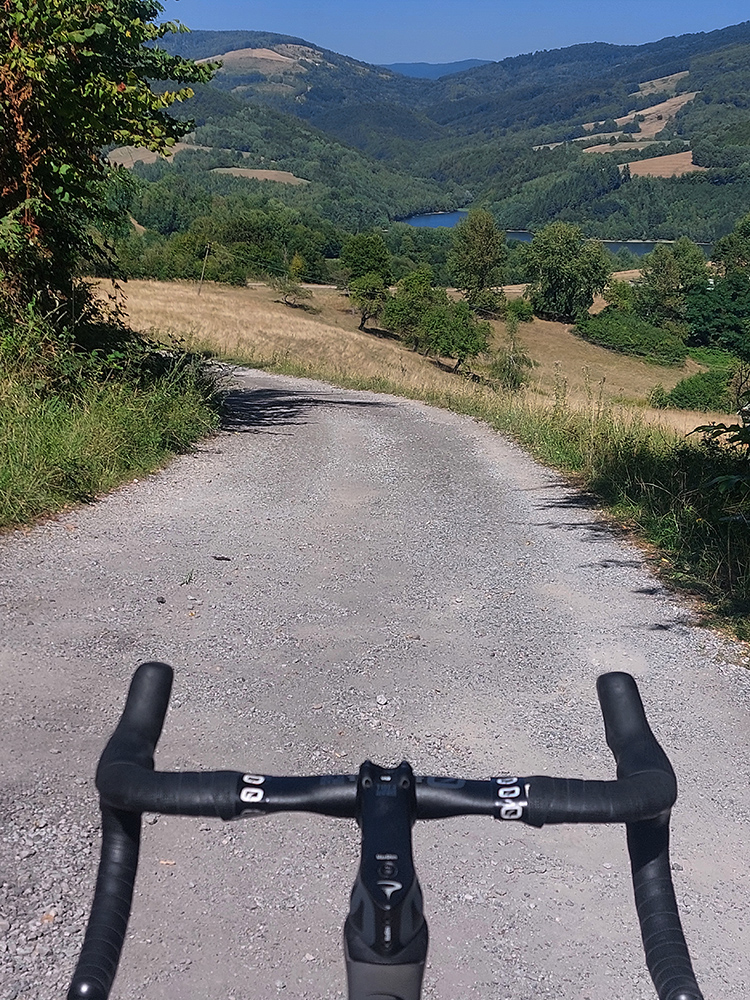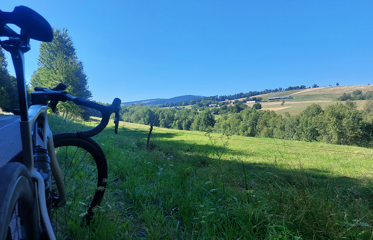 Taaaak, Hriňová! Ešte posledné ozajstné (a poriadne výživné) stúpanie od mliekarne ku kostolu na Raticovom vrchu – dostal sa aj prevod „vyprošťovák“ do akcie, nohy už trochu vädli. A trochu som už kopal do vrtule, čas súril. Tam to poznám, viem odhadnúť, ale keby nastal nejaký problém... Takže aj dole rýchlo, žiadne vozenie, fikot popri detvianskom amfiteátri a cez Dúbravy smer Zvolen.