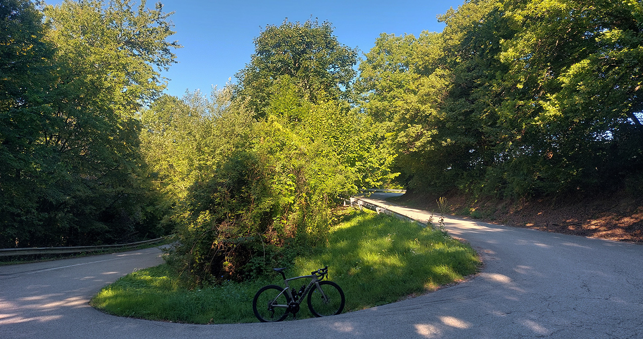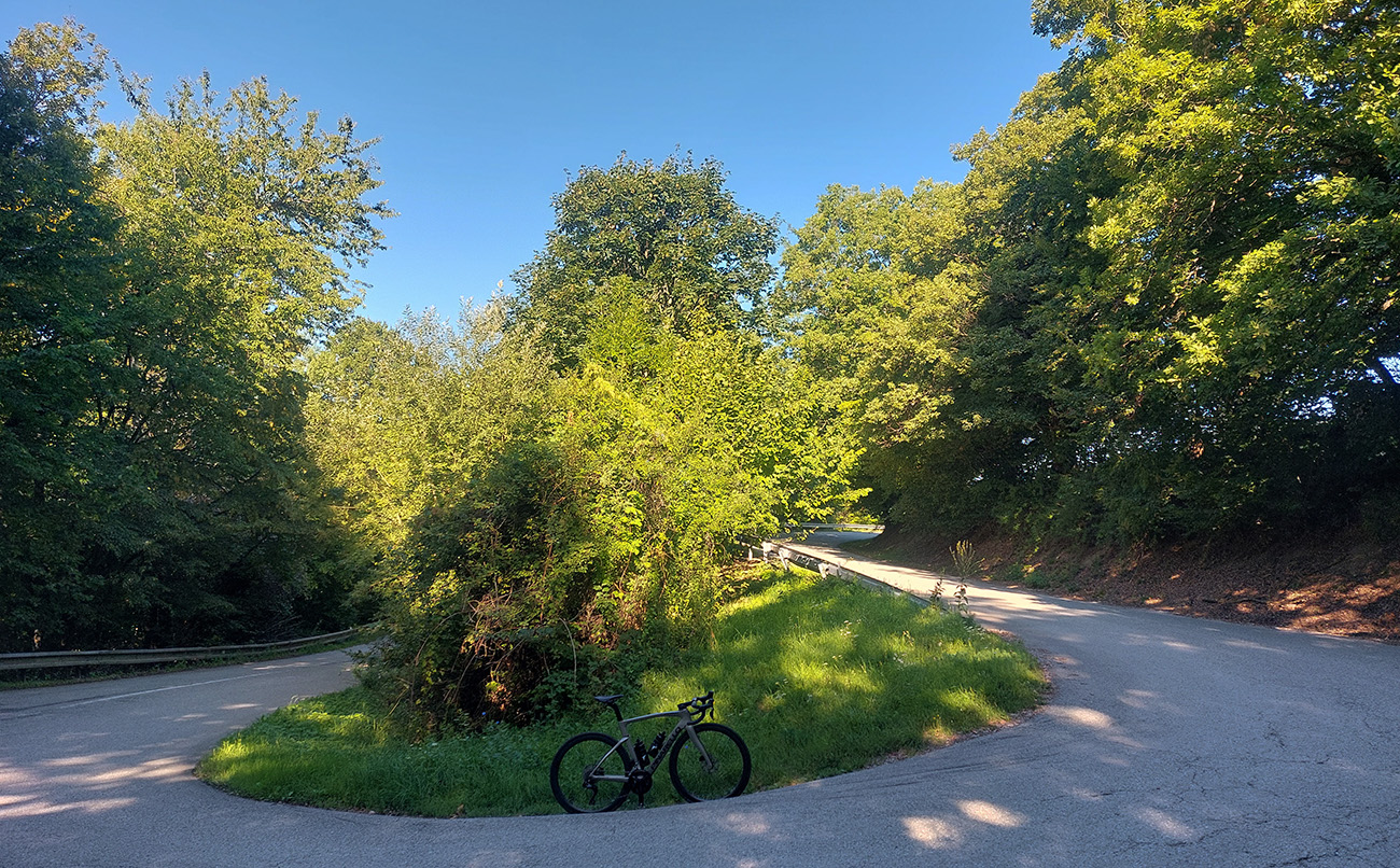 Serpentínky okolo kúpeľov sú nádherné, spočiatku aj výhľadové, naspäť do doliny Bodvy. Potom lesné hojdanie popod hrebeň a od kostolíka luxusný asfalt v zjazde na horný koniec Smolníka. Mňam!