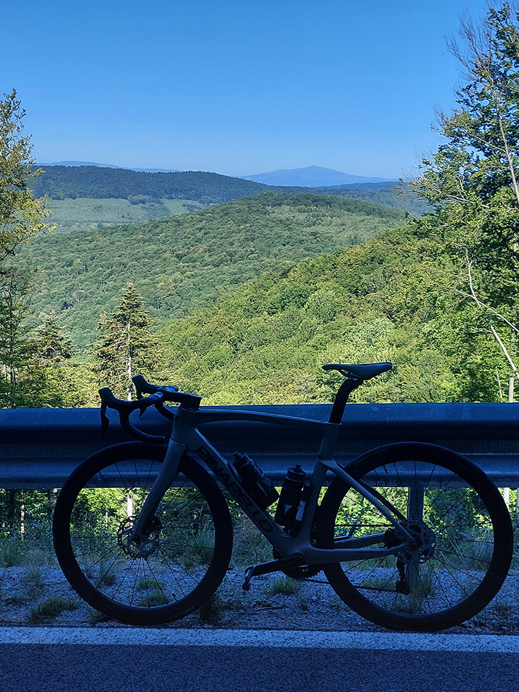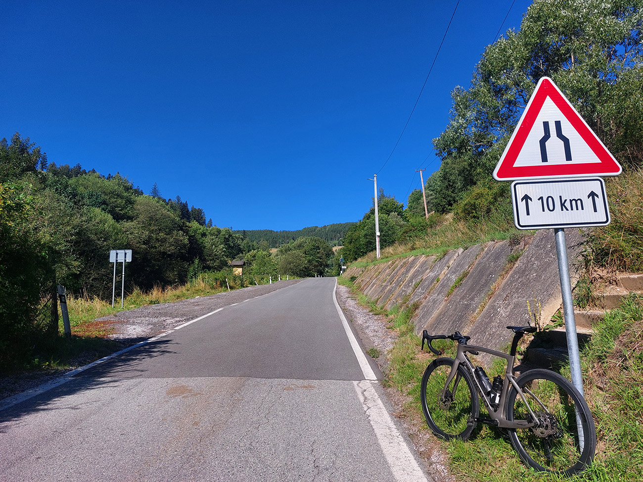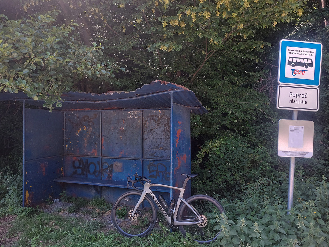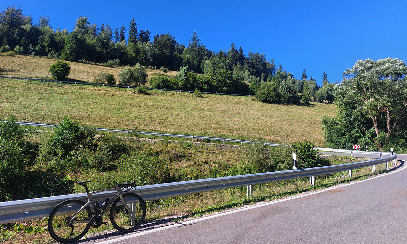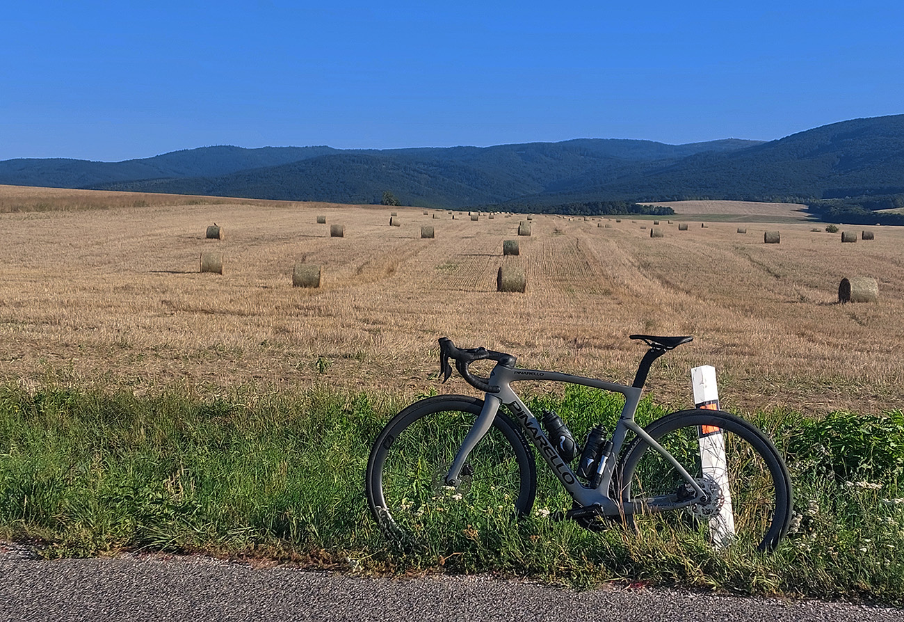Košice - Smolník - Rožňava - Jelšava - Hnúšťa - Hriňová - Očová - Zvolen, asi 240 km a 4200 výškových. Táto trasa ma lákala už dlhšie, lebo je okrem iného ukážkou, ako sa aj na cesťáku dá robiť (v podstate) turistika po tichých okreskách, zaujímavých miestach, peknou krajinou. Ozaj celý deň nula áut, najčastejšie kamión – klaničák. Aj vďaka profilu ako píla nuda nehrozí, kráááásne stúpania sú tam. Navyše v ostatných rokoch ozaj veľa tých „zabudnutých“ ciest dostáva nový povrch, tak ani na žiletke nie je jazdenie po nich utrpením. Úhorná ako žiarivý príklad. Pri častom striedaní ostrého svetla a tieňa takto v lete, a zvlášť v zjazdoch, asi každý vie, o čom hovorím. Tak som si vybral deň po prechode slabého studeného frontu, keď augustové horúčavy povolili a vzduch sa vyčistil, naložil som sa aj s „Pinou“ do Tatrana, prespal v KE u rodiny a ráno pred šiestou už som fičal dole z Furče. Takto to nakoniec celé vyzeralo: