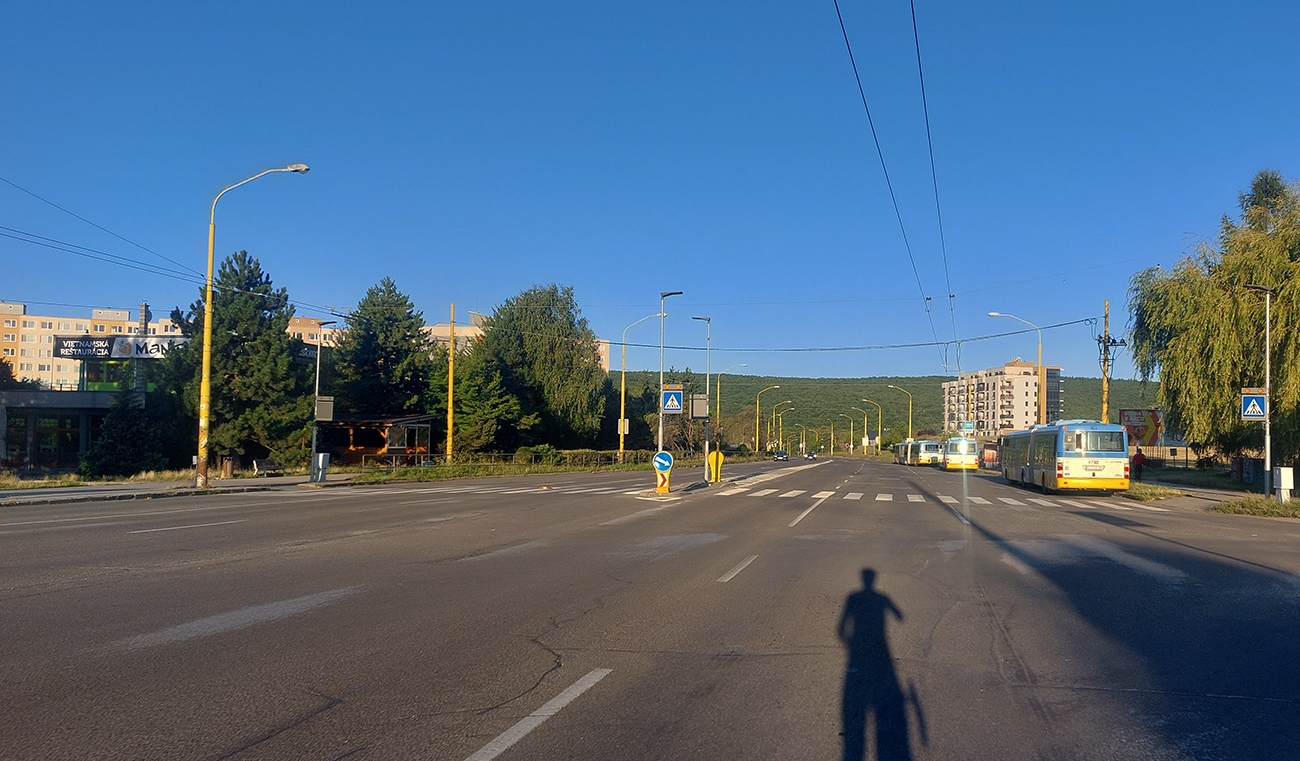 Samozrejme najhoršie cesty z celej trasy krížom cez mesto, a nielen električkové koľaje za to môžu. Pracovný deň sa síce už rozbiehal, ale stále prázdninový, tak doprava slabá a široké cesty cez Terasu a KVP voľné. So slnkom a jemným severáčikom do chrbta som bol na druhom konci mesta v Myslave rýchlo a pohodlne: