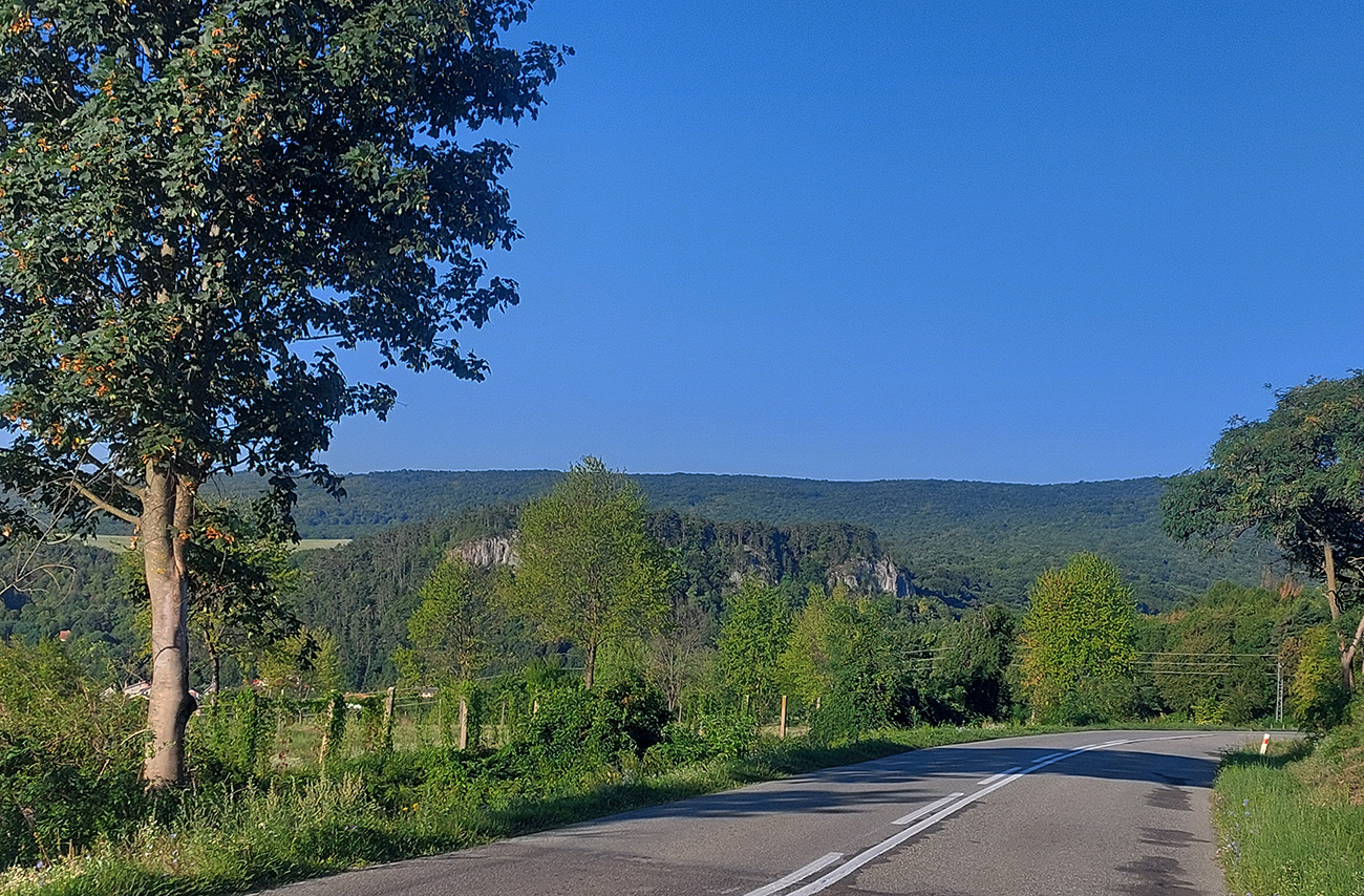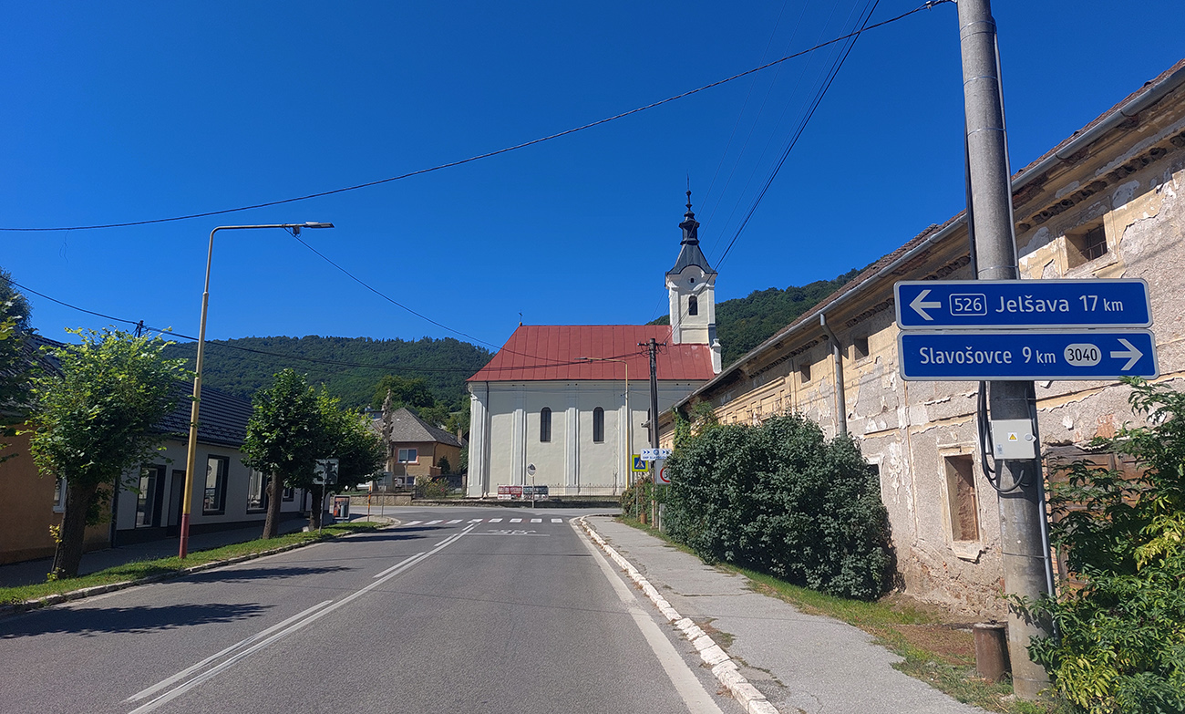 Za Rudníkom jediná zlá chvíľa za celý deň, keď sa bezmozog v protismere, na úzkej ceste bez krajnice, rozhodol predbiehať. Na trávu som musel uhnúť. Keby som pozeral doprava na Kojšovskú hoľu ako sekundu predtým, bol by to môj posledný pohľad. A to som sa držal tesne pri okraji cesty. Inak široké kotlinové panorámy, na dlhý čas posledné, potom serpentína dole lesom do Jasova, oproti známej Jasovskej skale, ukrývajúcej najstaršiu verejne sprístupnenú jaskyňu v Európe. 30 km v nohách: