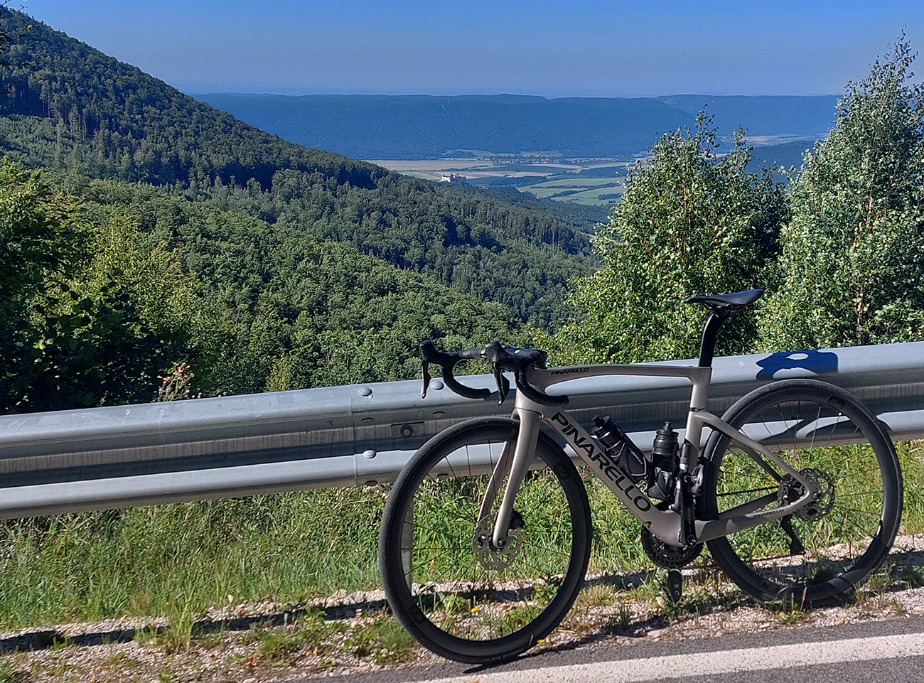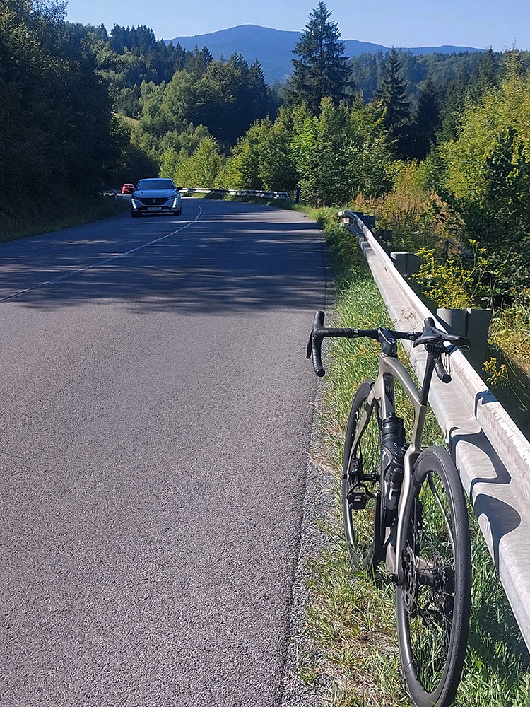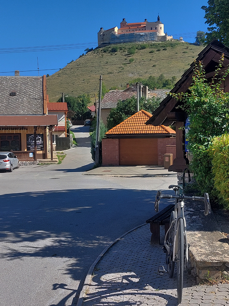 Na druhej stane inak: výhľady len cez diery v lese – párkrát Krásna Hôrka a v diaľke tiež hoľa, ale Kráľova. Aj tu cesta dole parádna, dokopy je to zas asi 13 km z Úhornej až do Krásnohorského Podhradia. Potom som musel kúsok po hlavnej, ale krajnica široká a vietor spolu so správnym sklonom cesty mi pomohli rýchlo z nej zmiznúť. Zato v RV som sa zdržal dosť dlho: najprv krátko a plánovane na malú pauzu na námestí, len požuť tyčinku a natiahnuť sa po štyroch hodinách, potom asi pol hodinu neplánovane, lebo som našiel na ceste doklady, hľadal políciu a čakal na spísanie protokolu. Práve ten čas mi potom trochu chýbal do komfortného finišu za Detvou, ale dobrý pocit stojí za to vždy.