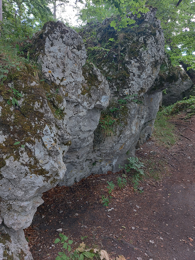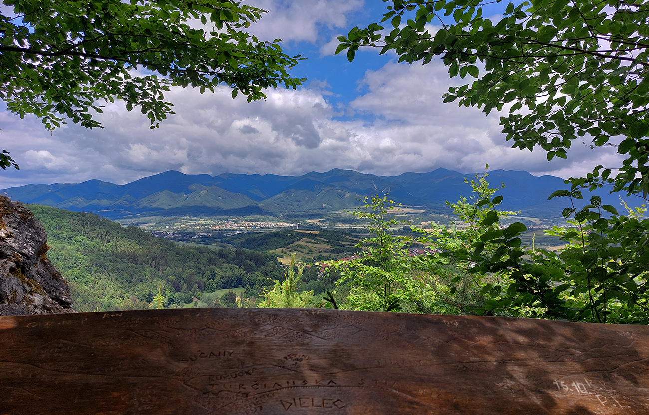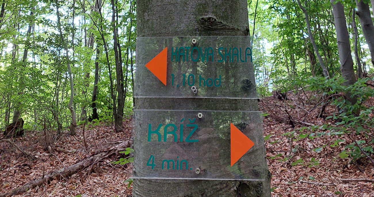 Chodník - singlík smerom na Katovu skalu by bol pekný, keby z väčšej časti neviedol krížom cez rúbaniská z ostatných rokov. Niekde sa už nový les dvíha, niekde je to čerstvo po ťažbe, ale aspoň pár výhľadov ku Krivánskej Fatre a k Martinu sa ponúka. Začiatok strmší, potom mierne stúpanie v traverze. Necelá hodinka a sme tam.