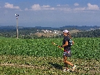 Ale najprv životabudiče na K5. Dyňa, jont, voda na hlavu, aspoň trochu odsoliť, jooooj vďaka! Len otázku, či chcem teplú polievku, som pokladal takmer za zlý vtip. Ešte protikrízovú chémiu do brucha a pome! Hej, hore lesom to ešte išlo, aj som sa černíc najedol. Ale vyššie, na tých nekonečne strmých pasienkoch peklo!!! Vietor just slabý a do chrbta (Kde je ten sľubovaný severák???), pod nohami rozpálený čierny asfalt či škvára, tieň nikde a just pred treťou. Šľahačkové kopy na severnom obzore ako poriadny výsmech. Aspoň, že tá chémia trochu zaberala. Až kľučkovanie pomedzi šutre hore na Jasenine prinieslo úľavu vďaka tieňu a vánku. A trochu aj zbeh k poslednému krmelcu v Ďubákove, lebo proti vetru.