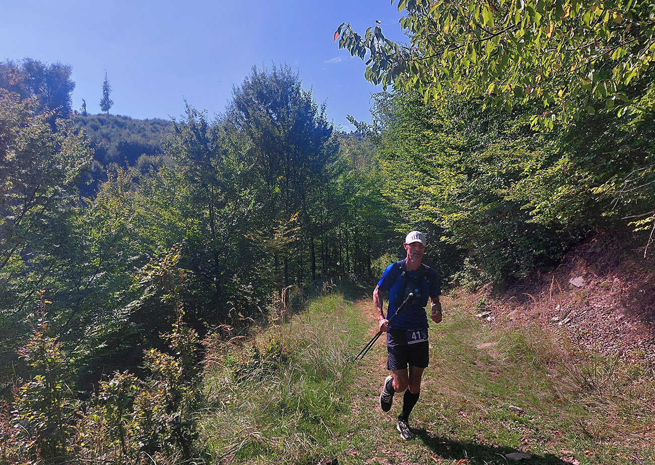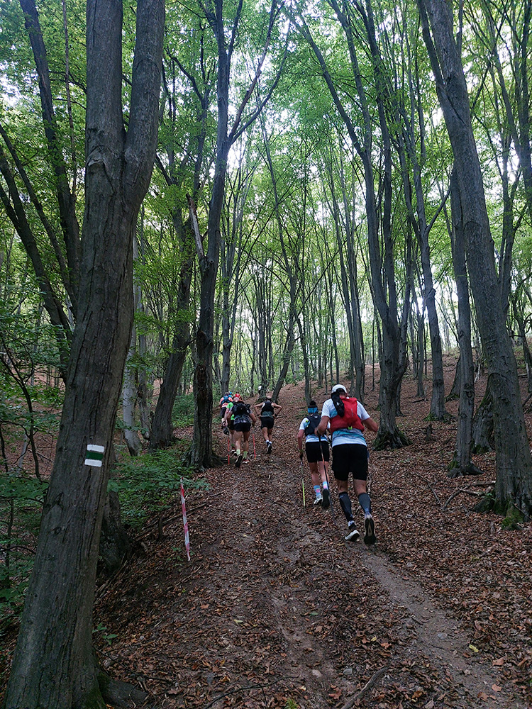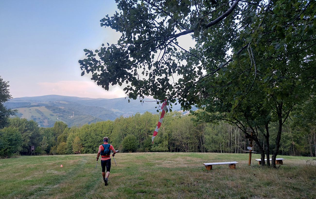V Utekáči boli ešte asi všetci utekáči a utekalo sa ku krmelcu normálne že cez pípaciu bránu – tak to aký pokrok!!! Ale logiku to malo, tam to bola ešte masofka a rýchlofka – a viacerí furt nevedia pochopiť pokyn, že štartové číslo má byť viditeľné a najmä VPREDU. Potom na chvíľu nebolo až tak treba pozerať sa pod nohy, tak som sa odvážil zdvihnúť zrak. A hrôza ma objala – mraky nikde, obloha čistý plech a Oskar začínal prikurovať!!! A čo horšie – aj dvíhať nočné vlhko zo zeme. S nedobrou predtuchou naletel som do druhého seriózneho stúpania, na Farkašku. Našťastie lesom, tieňom, serpentínami zmierňujúcimi prevýšenie.