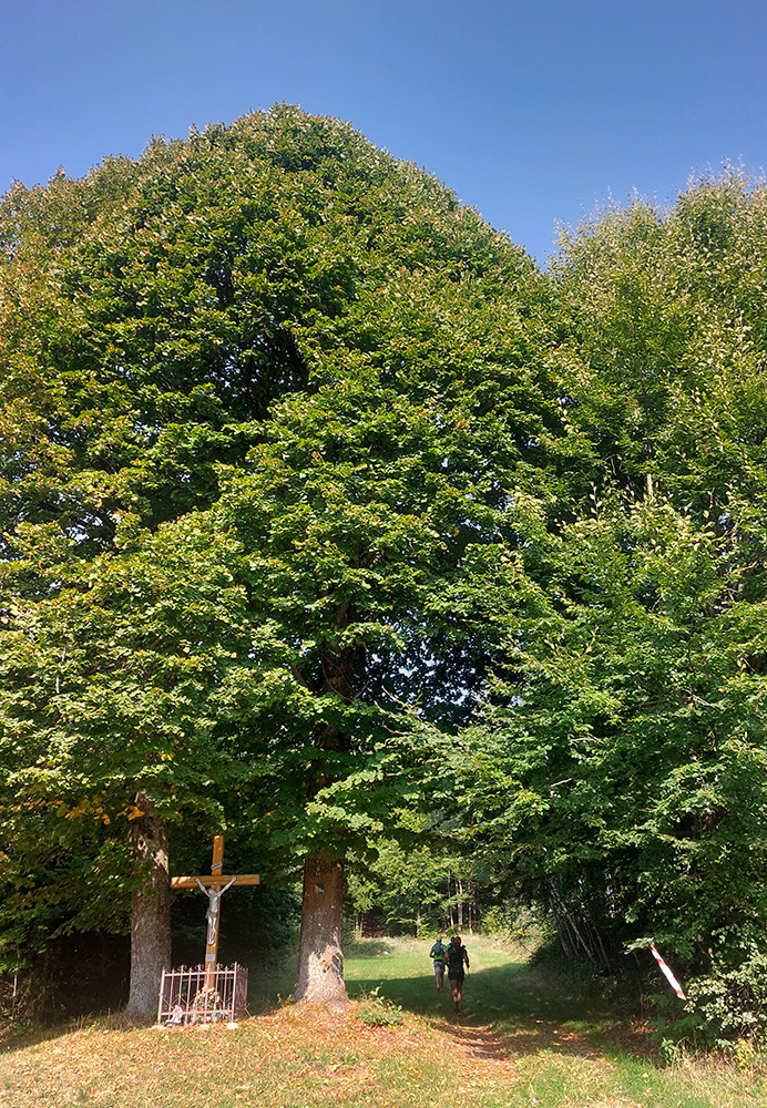 Dlhý výstup na Drahovú od K2: trochu lesmi, viac cez pasienky. Nie je strmý, ale teraz bol v závetrí, takže okolo hlavy mi to začalo intenzívne bzučať a čierno sa mihať. A začínalo dusenie vo vlastnej šťave – na južných svahoch bez tieňa.