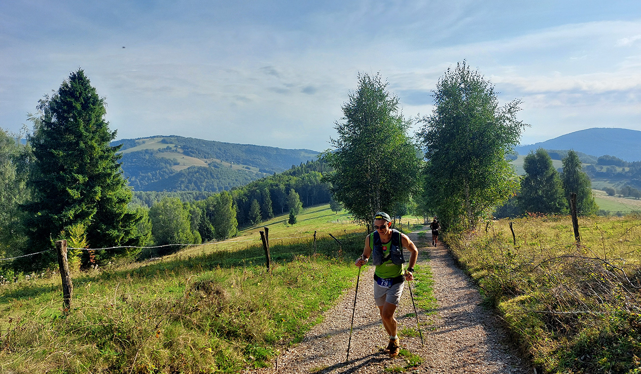 Naopak zostup z najvyššieho bodu trasy na K3 Bratkovica bol miestami aj príjemný. Proti vetru alebo v tieni lesa. Pod nohami cesty buď pohodlné, mäkké, lúčne, alebo naopak drevoťažbou rozrýľované lesné. Hlavne tých druhých akosi každý rok pribúda, mám dojem. Tam bolo bonusom aj jedno exkluzívne blatko, dokonalo impregnačné – lebo ani preskočiť, ani obísť. Osamel som, všetci naokolo kamsi zdrhli, nemal som ľudí na fotky a zastať a čakať na pomalších sa mi nechcelo. Hlavne som sa však začínal cítiť po tých úvodných prepaľovačkách zodpovedajúco stavu – starý, hrdzavý, nemobilný, asi takýto: