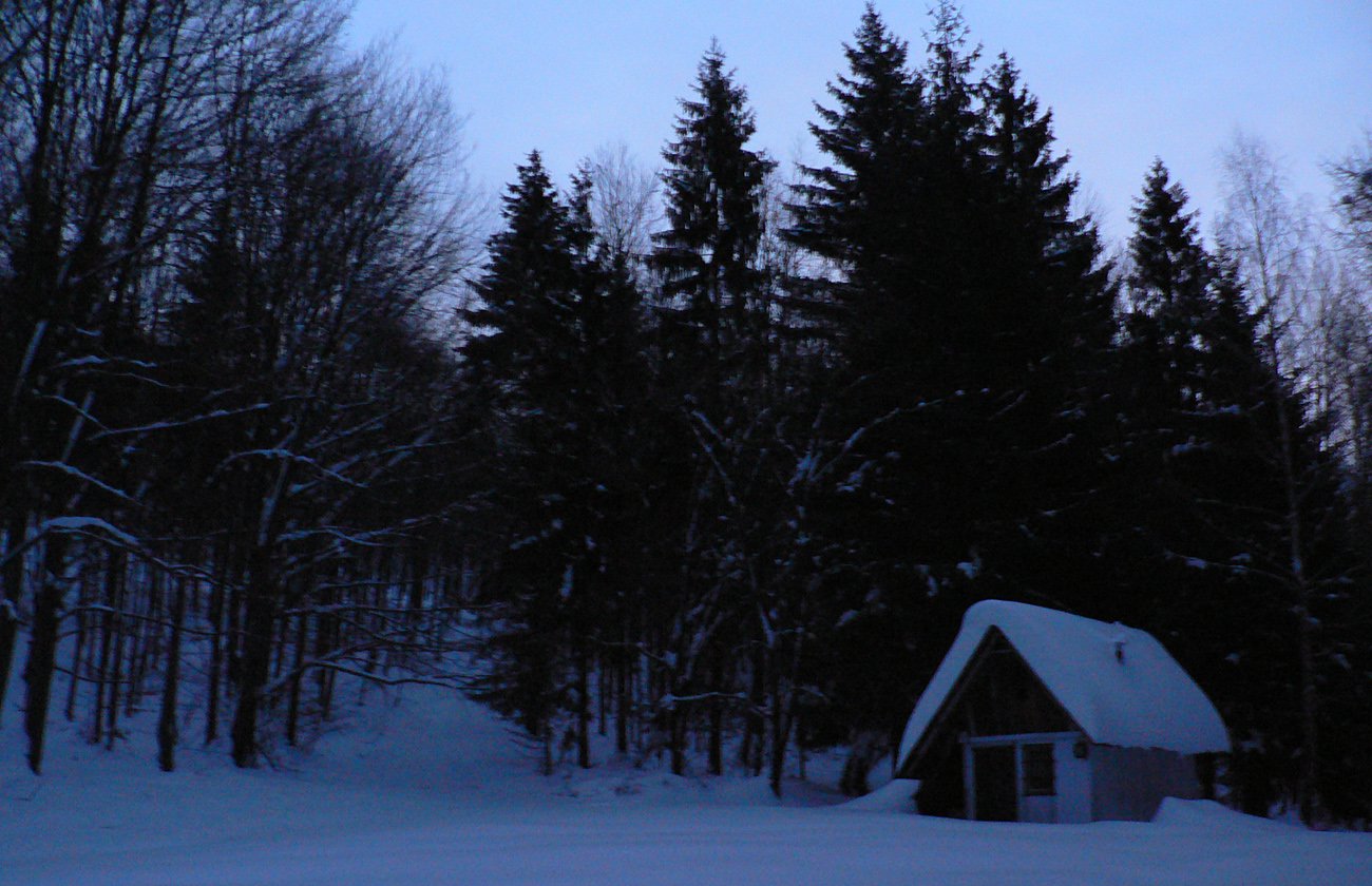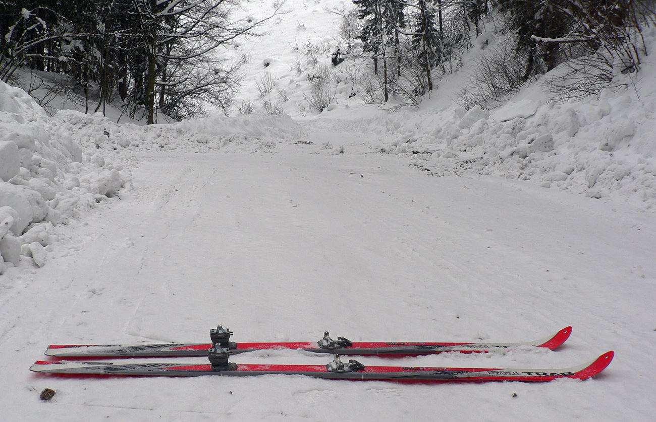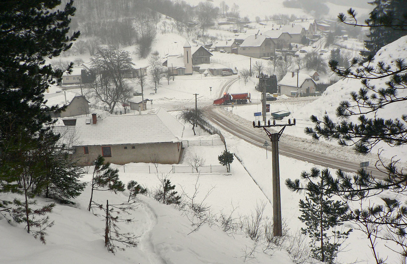 Ale potom, na ceste v doline, šok: len sekundu príjemný, že cesta prehrnutá. Metrové mantinely! Ale hneď na to šok nepríjemný: cesta posypaná, a poriadne hrubým štrkom! Načo je štátnym lesom takýto luxus? A popri ceste niet kade na lyžiach. Sakra!!! Hodinová pešovačka do Sklabinského Podzámku, samozrejme spoj fuč, ďalší o dve hodiny...