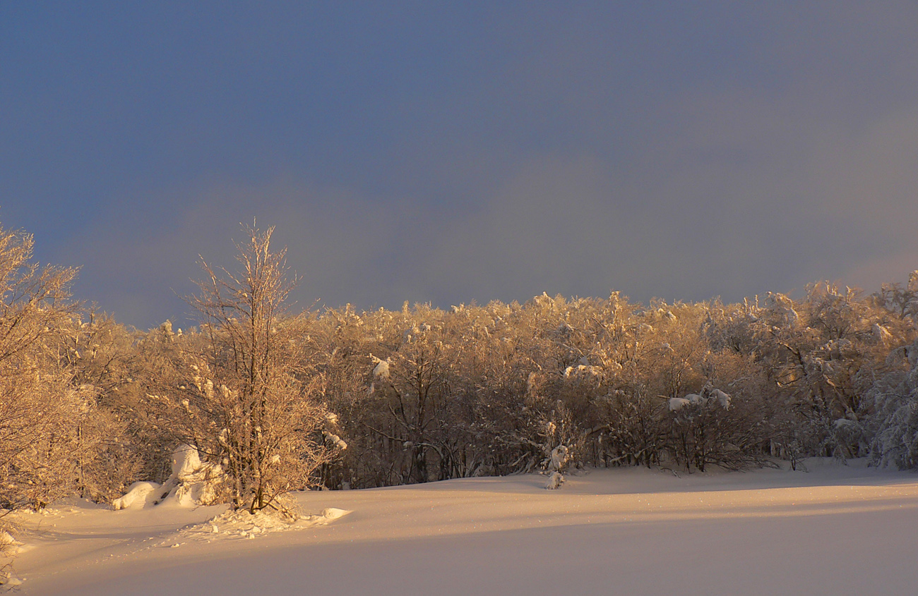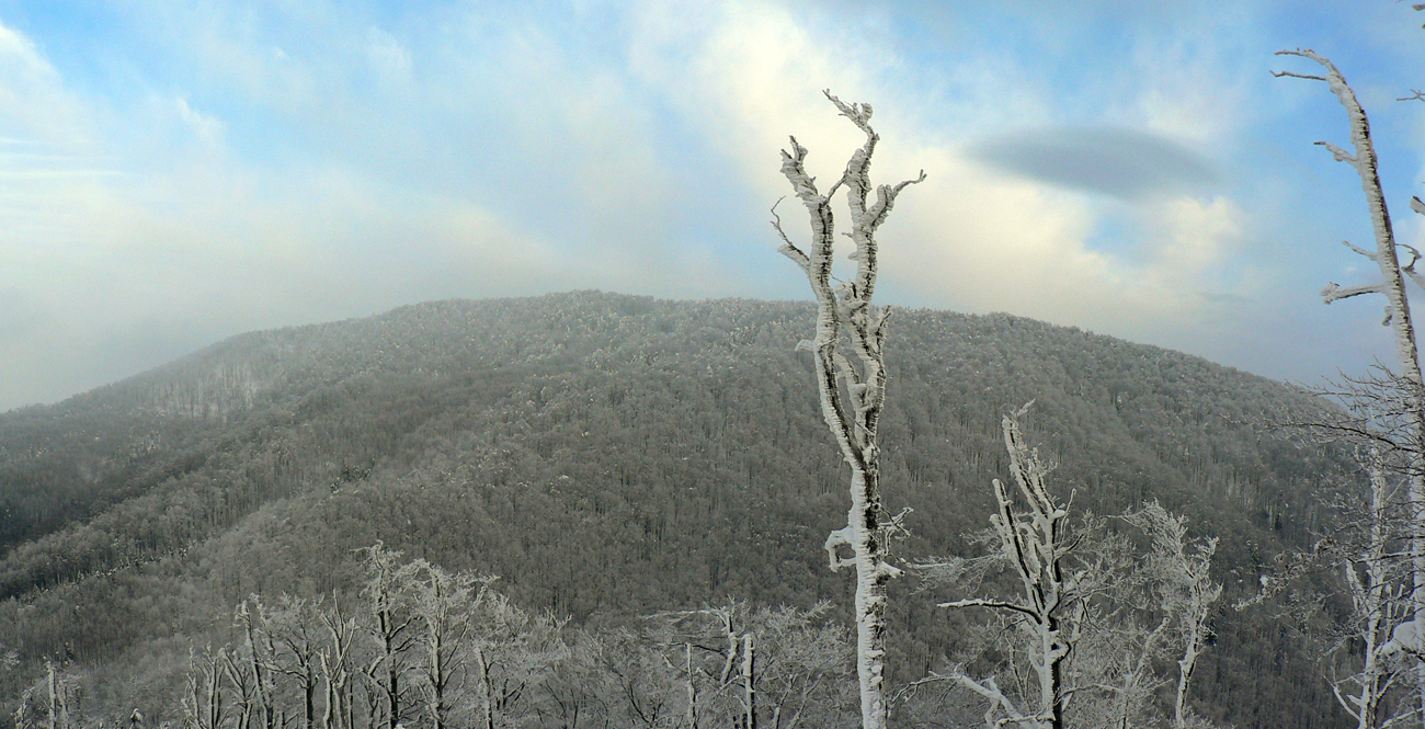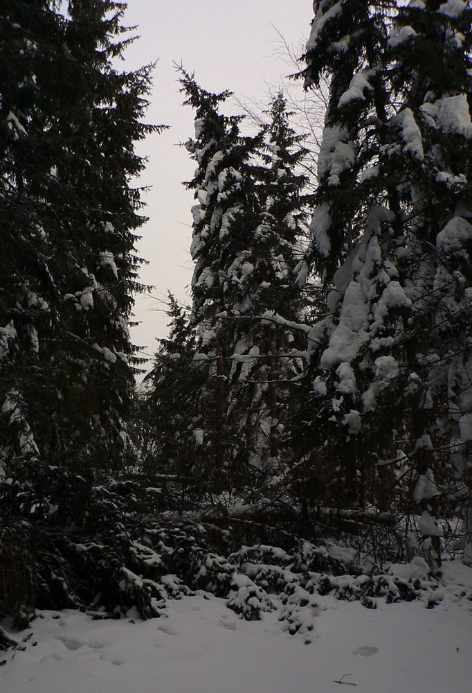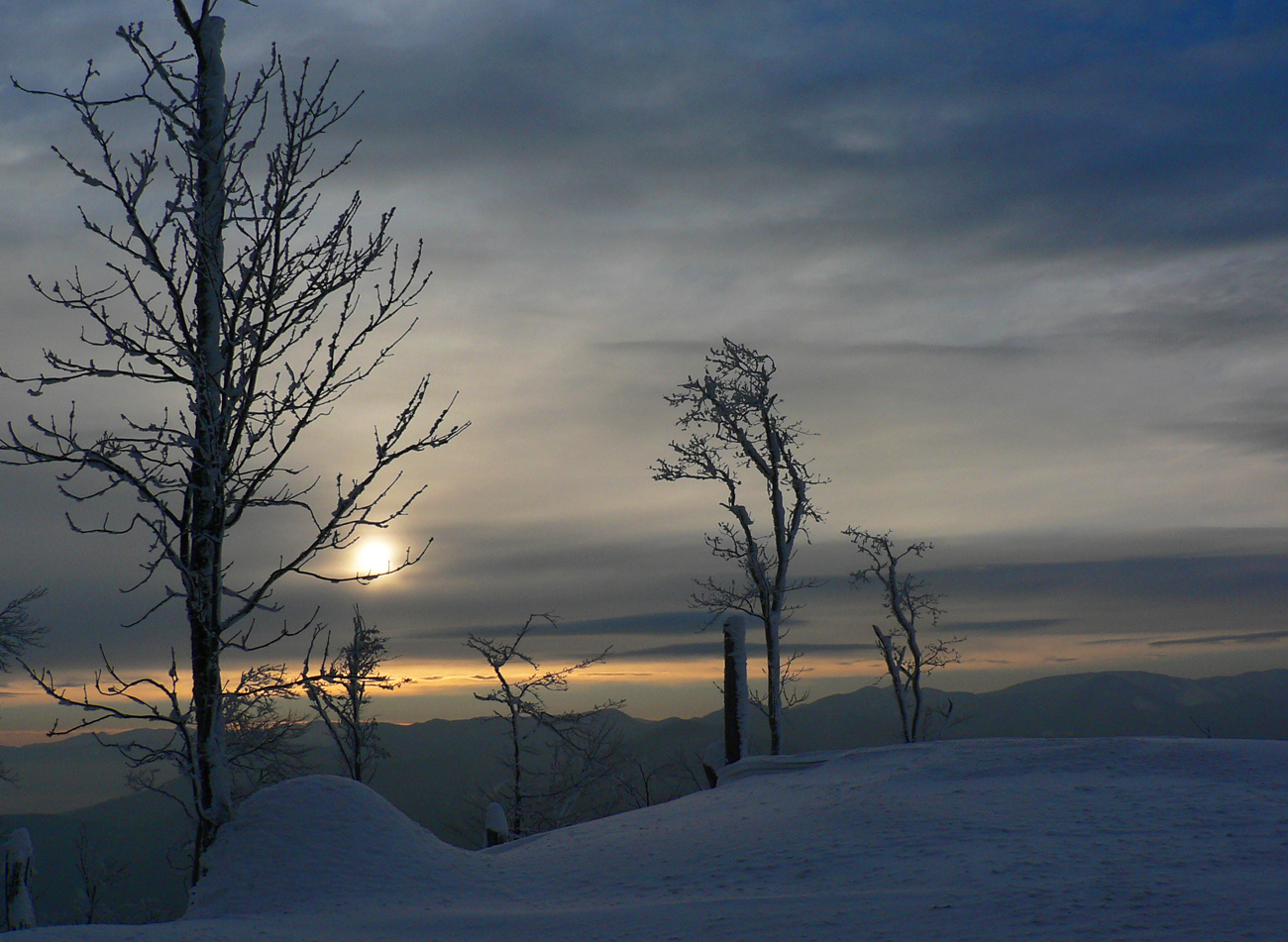 No, tak som sa vytrápil za dve hodky až hore. Zabárať vyše členkov som sa začal už za posledným domom. Plus čím vyššie, tým strmšie samozrejme, do toho popadané stromy, proste chuťovečka! Ale ako bonus krásny východ slnka, kým sa skrylo vyššie, do vrstvy mrakov frontových.