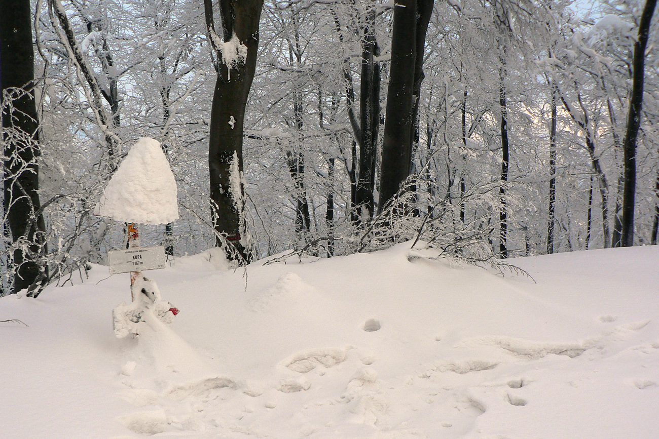 Ani v lete na Kopu veľa ľudí nechodí, dupľom pri týchto kvantách snehu. Na lyžiach už hádam vôbec nik. Ešte tak snežnice, to je v podstate na celom „turčianskom“ hrebeni VF až pod Borišov v zime ten najlepší dopravný prostriedok.