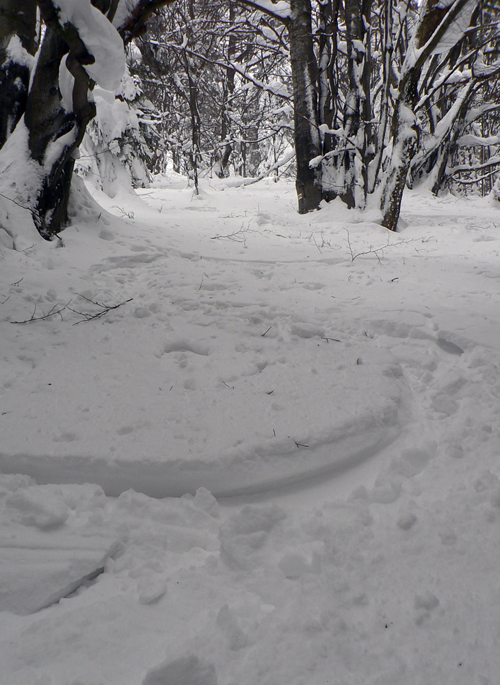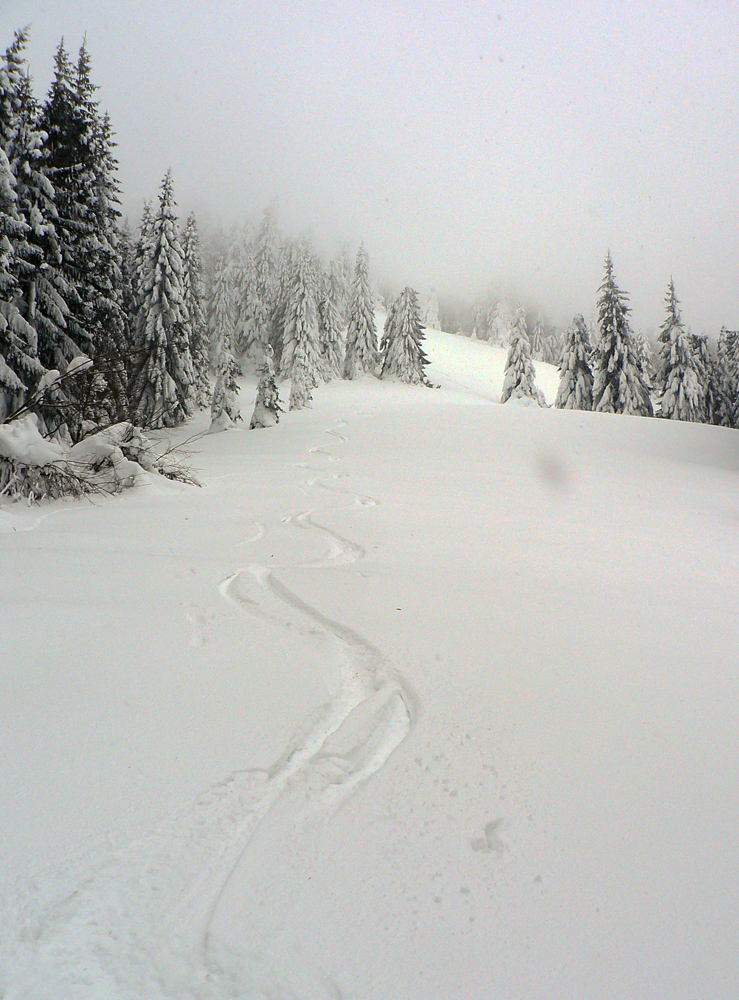 V Príslope ma opustila nádej, že aspoň tie snežnice smer Kľak? Ale kdežeeee, zas prvú stopu tlačím. Krátko po „rovinke“ zvážnice a potom to prišlo...