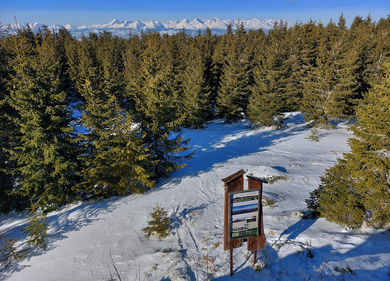 Po rozľahlých lúkach pred Smrečinským sedlom si ťahám za sebou čerstvú lajnu, len máličko sa prepadávam, kôrka je hrubá. Výhľady sa rozširujú aj na západ, niekam ku hrebeňu nízkotatranskému a možno až ku Fatrám? Vľavo vpredu nad tmavozelený les znovu vykukuje môj žiarivo biely cieľ. A už som znovu von na slnku, preč z mrazivého tieňa, vrhaného Prednou hoľou.
