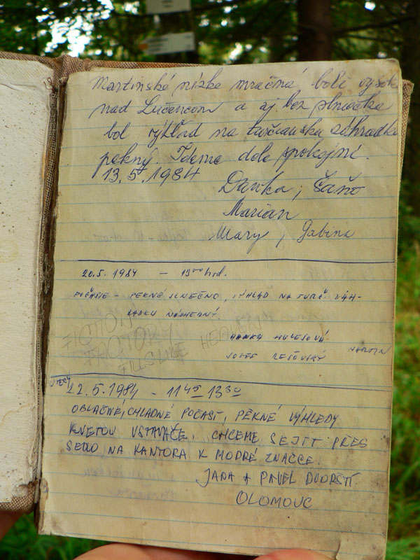 Druhým problémom sú tie sľubované výhľady – vo vrcholovej knihe sú najstaršie záznamy z mája 1984 a všetci sa tam rozplývajú, ako nádherne odtiaľto vidieť. Lenže stromy za tých 25 rokov poriadne podrástli! Asi najlepší je pohľad z lúky „Pod Lučencom“ krížom cez Kantorskú dolinu na blízku Katovu skalu a potom spod vrcholu kopca na opačnú stranu - na stred a sever Turčianskej kotliny.