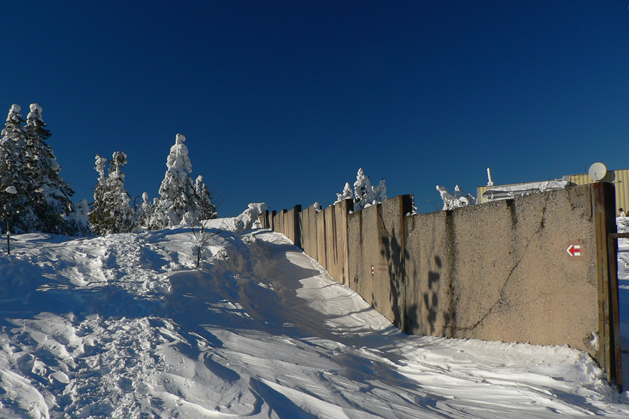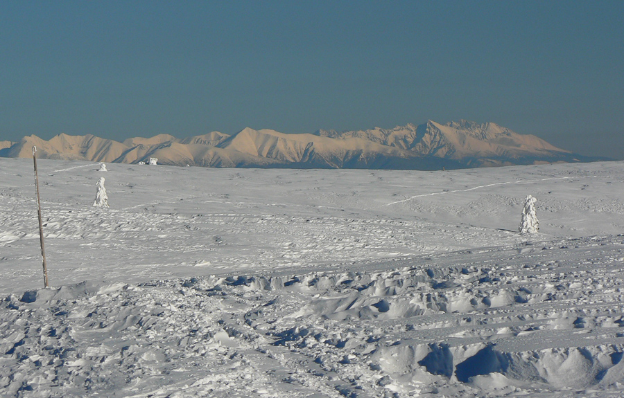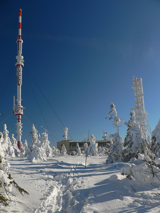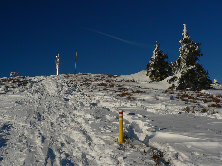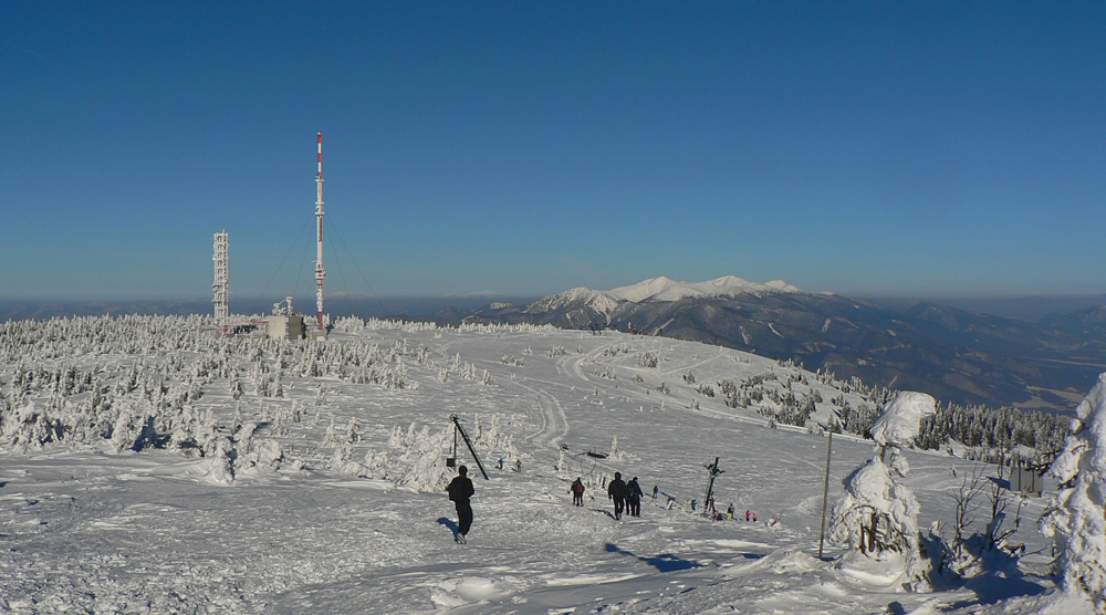 Medzi vysielačmi je na môj dnešný vkus príliš husto, lyžiari a turisti sa promenádujú po „ratračej stope“, rýchlo preč. Na Krížave som odbočil poza vysielač, plot okolo jeho areálu skoro nevidieť ,čo je toľko snehu. Tak to má byť v strede zimy!