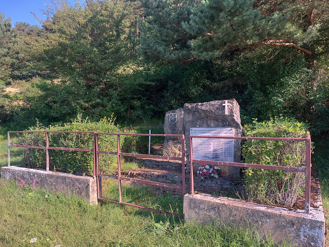 Takže prvý úsek po Turík: z Likavky popod diaľnicu pod Choč, po turistických značkách, potom po jednoznačnej ceste popod horu, všetko pekne zjazdné, len asi na dvoch miestach si treba ohradník otvoriť. Cestou pamätník SNP, malá prírodná rezervácia Mohylky, tuistický prístrešok na náučnom chodníku aj s infotabuľami, pekné výhľady dole na okolie Ružomberka, komíny trčia.