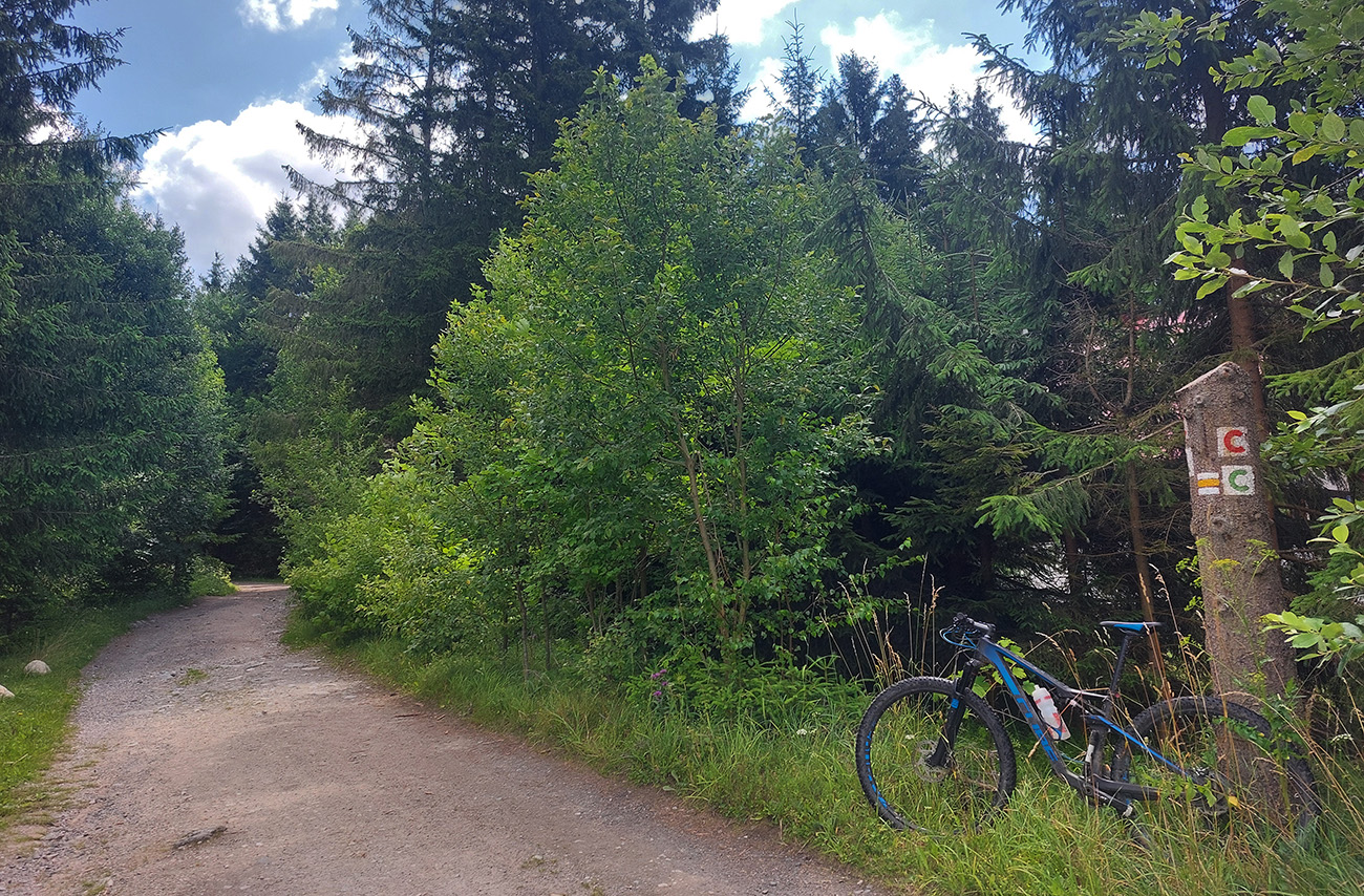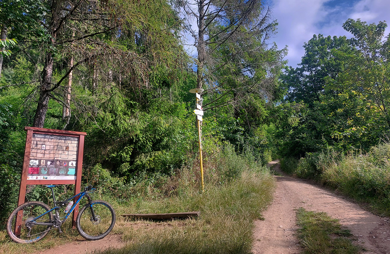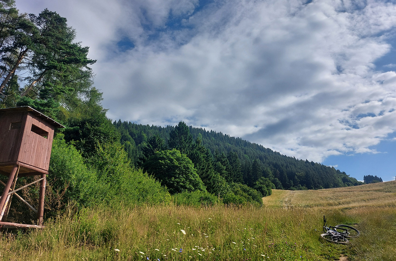 Kopček Beňovo oproti vlekom na Opalisku som obišiel z juhu – nechal som sa zlákať jasnou cestou popod vlek, ale lepšie je to zo severu - netreba v závere tlačiť a sú tam aj výhľady. Potom už popod les do Iľanova je to jednoznačné a pohodlné. Tam začala v podstate posledná etapa, kde sa mi tie „preskoky“ z ústia jednej doliny do druhej dosť zlievali, ale inak to je až do konca veľmi pekné, a už nie moc strmé jazdenie.