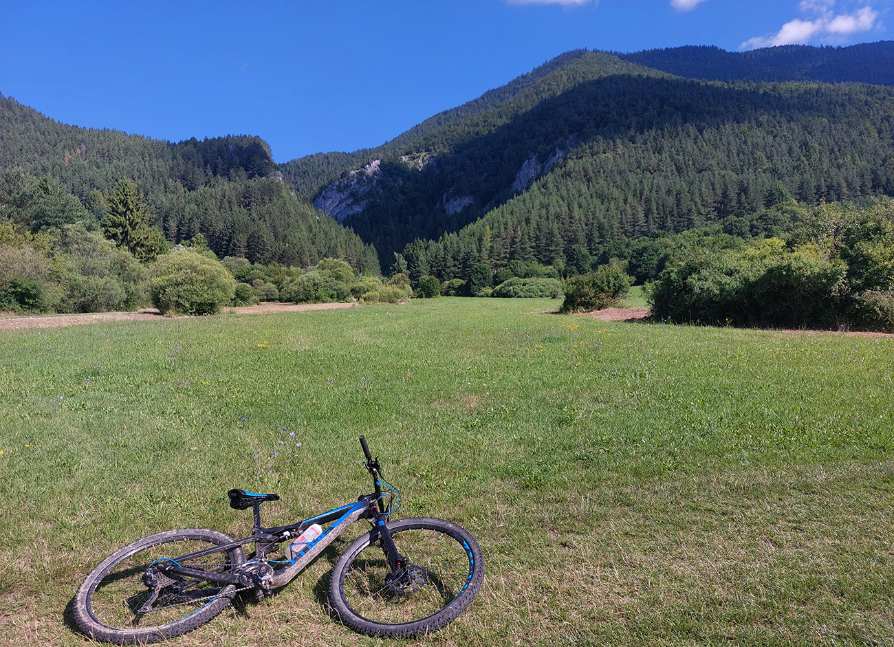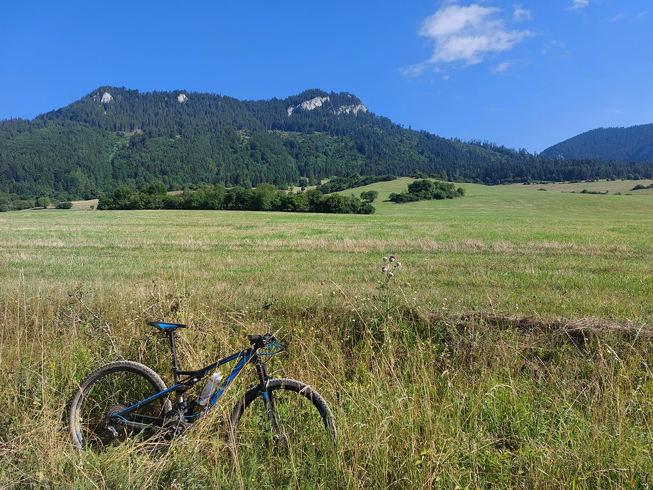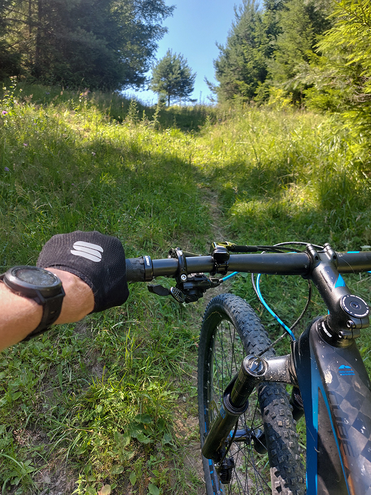 Popod Liptovský hrad (najvyššie položený na Slovensku, keby niečo) je to smerom na Liptovskú Annu jasné, ale strméééé! A po lúkach s číhajúcimi rojmi ovadov. Hore v Sedle pod Kráľovou som sa zamotal, ako som sa im snažil ujsť a zároveň nájsť začiatok zjazdu po červenej značke, v metrovej burine. Keď som našiel ten úzky chodník, už bolo dobre, len šľahúne šľahali chvíľu z oboch strán ako besné, až po lakte. Dole popri potoku naopak široká asfalto-šotolina a odtiaľ až do konca už prevažne po cyklotrasách.