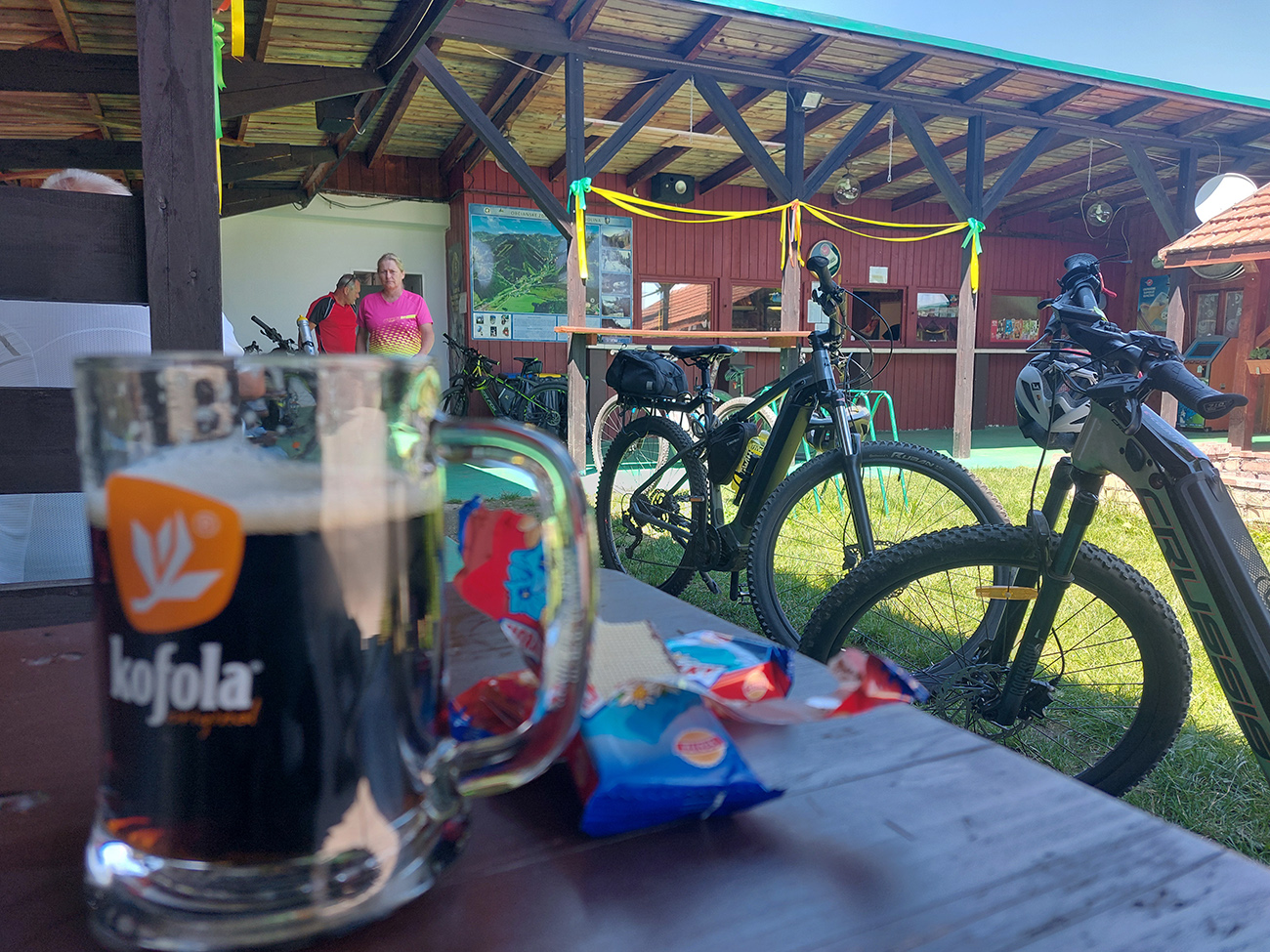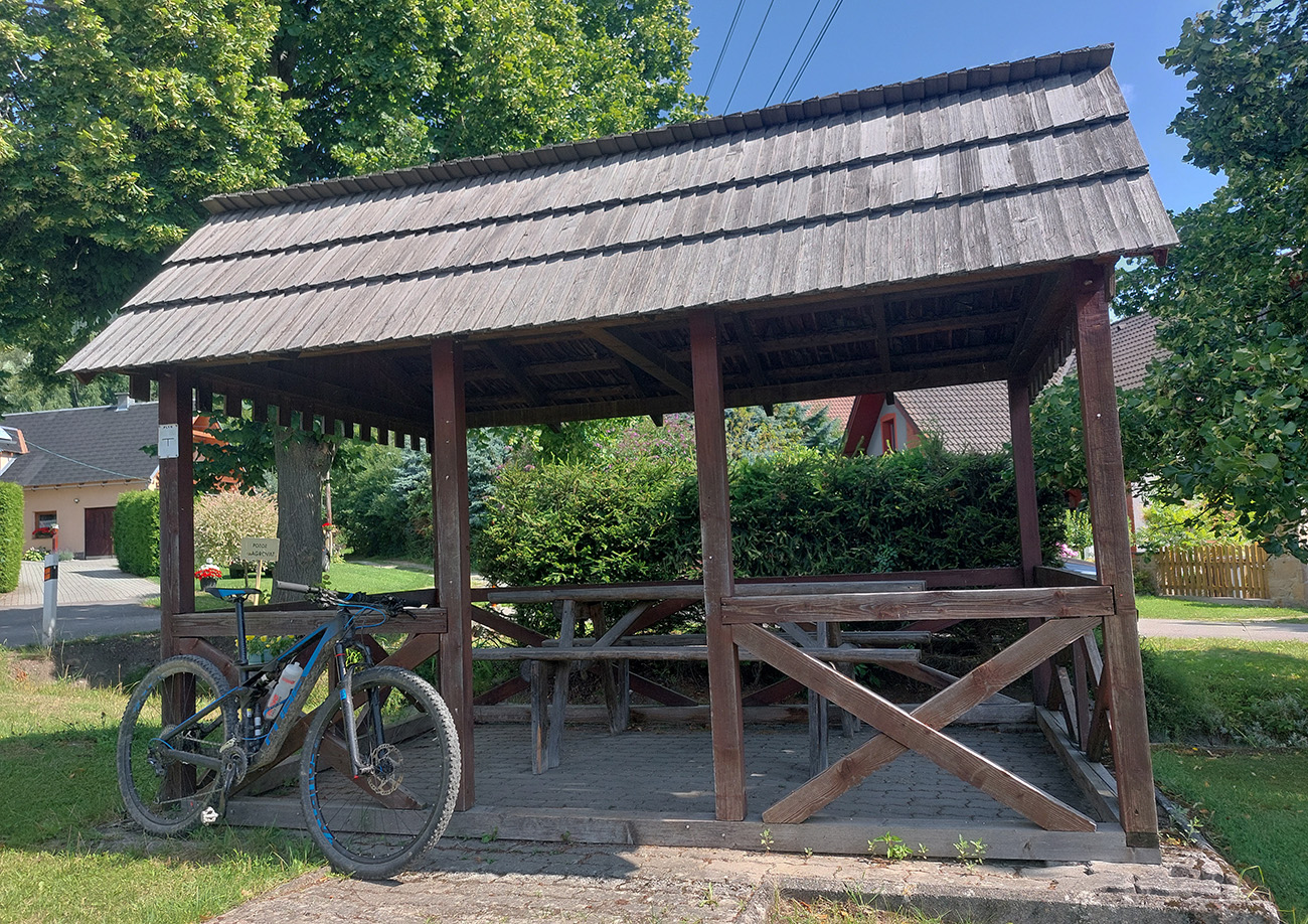 Z Podturne cez „hojdací mostík“ najkratšou cestou do Jána, a pretože som bol už za polovicou trasy aj dňa, dobre padla dlhšia pauza na kofolu a dve horalky – v tieni Záhradného bufetu pri ihrisku. Aj som namazal, lebo zdola už to začínalo škrípať. Ten vosk čo mám musím rýchlo minúť, nič nevydrží. Po pár minútach teda davááááj hore dedinou, okolo kúrií, známej termálnej Kade a kúpaliska.
