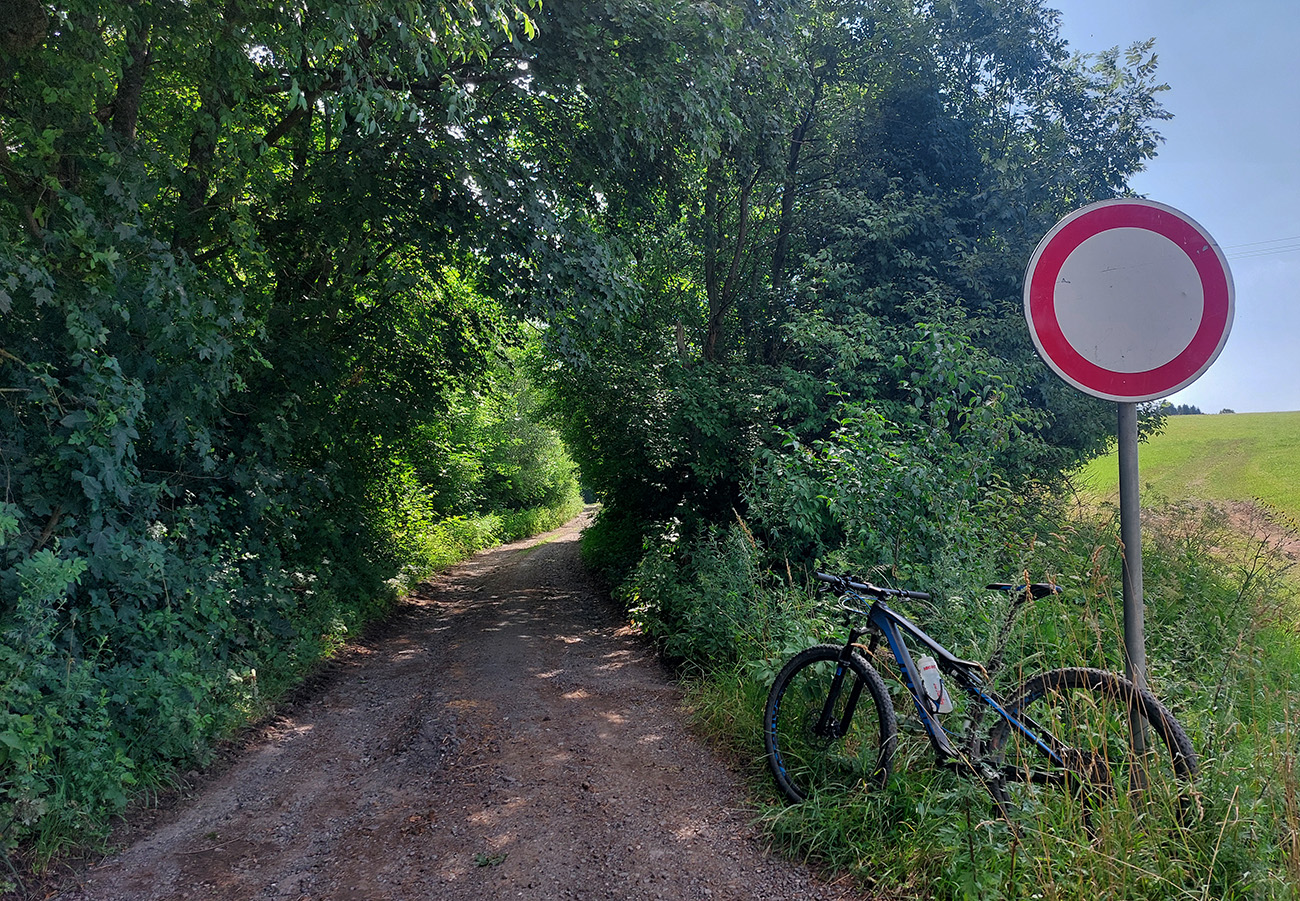 Z horného konca Turíka síce jednoznačná, ale fasa strmá a trochu rozrytá zvážnica, aj som zo trikrát potlačil, aj vyššie na lúkach. Prvé ovady útočili :) Možno by sa to dalo obabrať nejako pohodlnejšie, južnejšie, do Madočian po lúkach, ale to treba poznať terén a sily aj chuť ešte boli. Ako strmo hore, tak aj dole, ale pred Lúčkami sa to položilo a na horný koniec dediny, k amfiteátru, ma doviedol príjemný singlík v traverze, okrajom lesa.