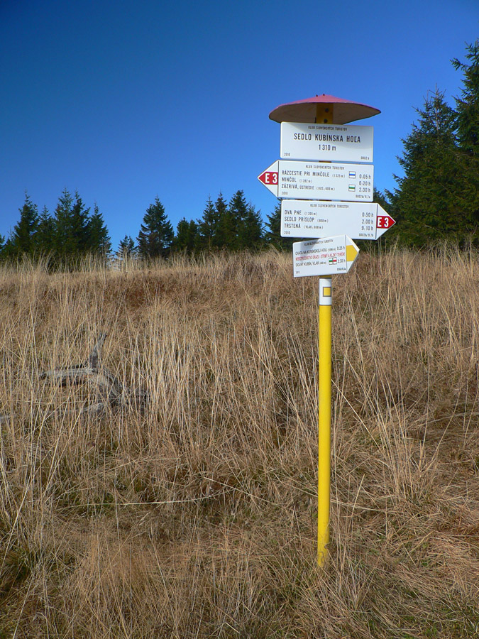 V sedle medzi hučiacimi autami sa dlho nezdržujem, stúpam mierne lesom, kúsok ešte miernejšie lesnou asfaltkou a po odbočke z nej na zvážnicu nasleduje strmý začiatok hrebeňa Príslopu. Až po hodine sa otvára prvý výhľad na sever, vďaka rúbanisku. O ďalších 15 minút už som ale na lúkach Mokraďskej hole, okrem výhľadov konečne mám pod nohami chodník a nie zvážnicu. A tak až na Kubínsku hoľu, kde sa pri pohľade dozadu znovu predvádzajú krásne obielené Západné Tatry. Minčol si dávam okľukou: zachádzkou na sever po modrej a nazad na vrchol po významovej značke – oplatí sa kvôli prechádzke interiérom pralesa národnej prírodnej rezervácie.