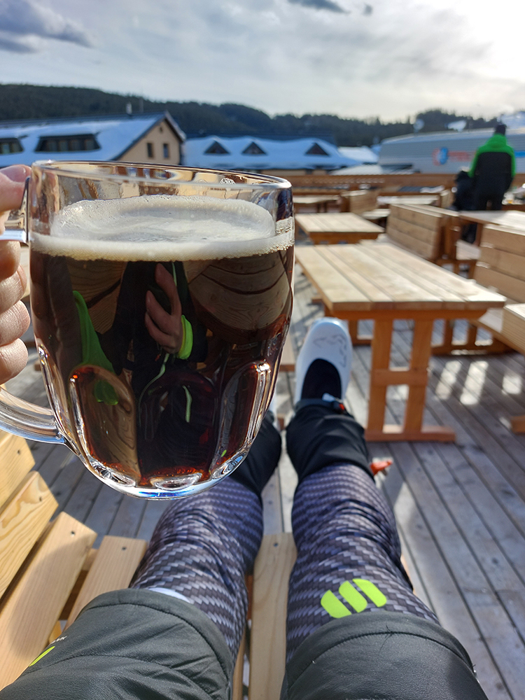 A aj bolo už poludnie a aj keď oskar svietil, betón hore nejako moc nepopúšťal... Na Zvolen sme v protislnku hrkotali po zrkadlovo sa lesknúcich pláňach, no fuj! Rodilo sa rozhodnutie obabrať to smerom dole po zjazdovkách a zakrčmiť niekde na slnku. Tak sa aj stalo a z lavíc pred barom, vybavených dokonca dekami a vankúšmi, sa nám nejako nechcelo, od tej kofoly. Ale nebolo na tom slnku zas tak úplne jarne, tak sme sa napokon dvihli – asi keď naši dali prvý gól Švédom v boji o olympijský bronz (podľa kriku z baru).
