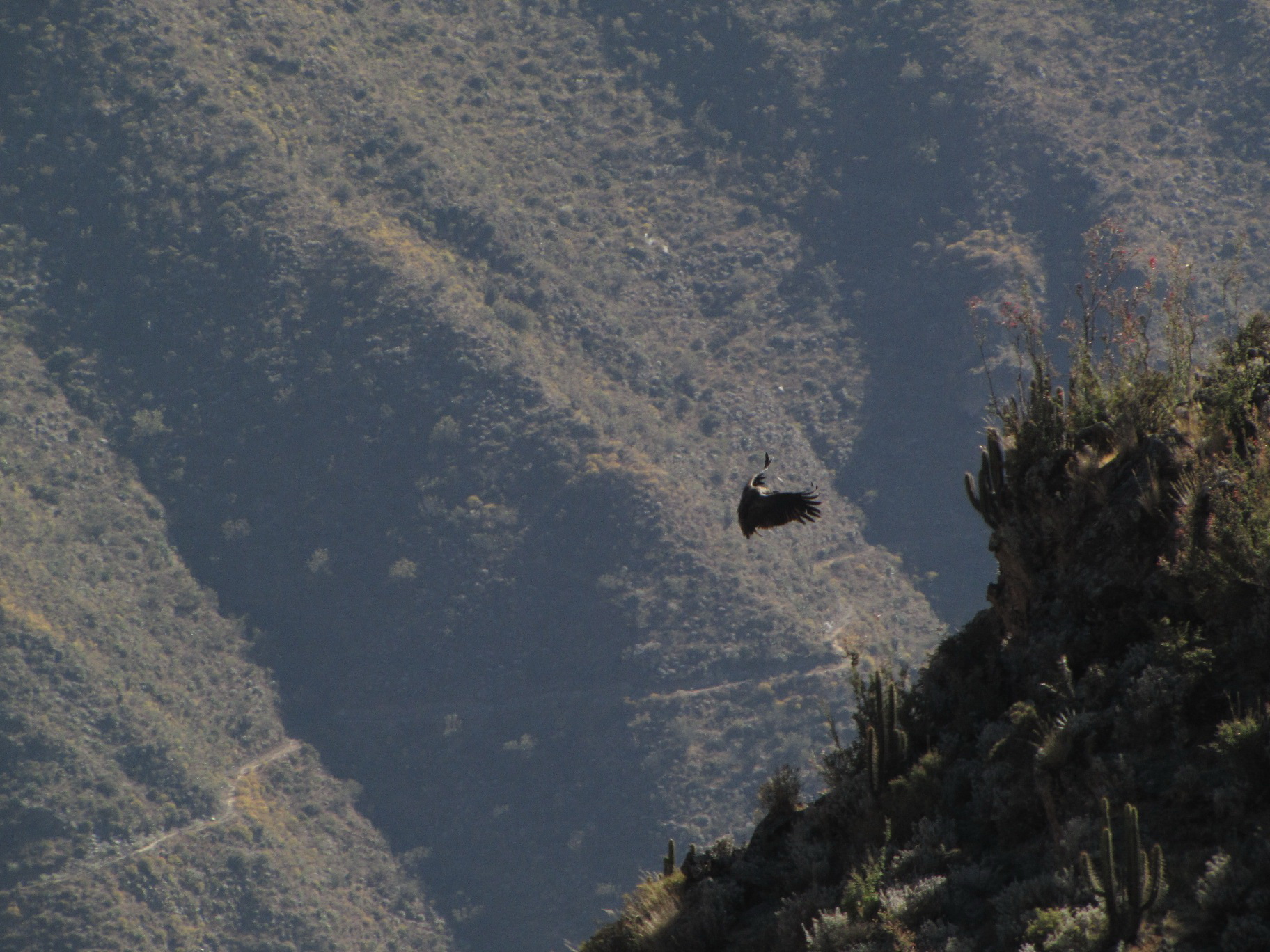Ráno sa chladný horský vzduch nahrieva od vychádzajúceho slnka. A práve striedanie vzdušných prúdov využíva kondor pri svojom lete. Tento vládca Ánd vlastne nelieta, ale vznáša sa! Ešte ani nie sme priamo pri samotnom kaňone, keď sa ponad naše auto prevalí ohromný tieň, čo následne mizne v hlbočine vedľa nás. A nad ním je on – majiteľ tohto tieňa. Majestátny, neohrozený a uznávaný vládca juhoamerických Ánd!