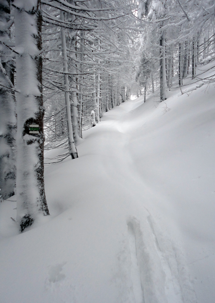 Tak, konečne prišla poriadna zima po novom roku. S kalamitou, severným vetrom, skríženými kamiónmi a nestíhajúcimi hlásateľmi Zelenej vlny. Lavínová trojka sa lokálne a pozvoľne zmenila na štvorku, treba ísť dobrý skutok spraviť, stopu prešliapať. Síce to nik neocení, lebo ju hneď zaveje, ale čo... Len sa treba v lese držať, aj tak na hrebeňoch nič nevidno. Nooo, ale zas nie len tie zvážnice, na začiatok budú stačiť. Lebo plán je takýtok: začnem Belianskou dolinou a odbočím do Slávkovej, po žltej pod Lysec. Ak prerazím tade, opáčim prašanové lúky na hornom konci Jasenskej doliny. Ak nie, potiahnem pod Borišov a cez Ploskú sa prehupnem do Liptovských Revúc.