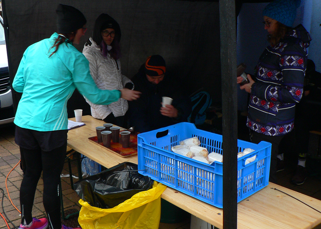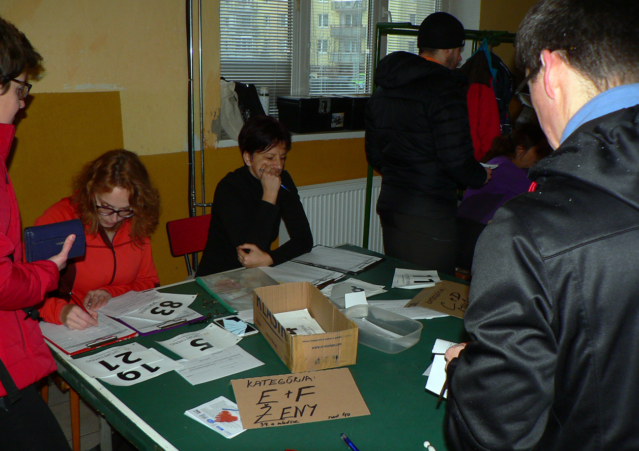 V cieli tradičná fajná bagetka, teplý čajíček, vykecávanie a kašľanie... A poniektorí aj cigaretku druzgli na upokojenie rozbúrených pľúc. KK Sport Timing makal v mikrobuse o dušu, výsledky priebežne naskakovali na veľkom monitore, takže nejakých 15 minút po dobehnutí posledného kusa mohlo sa ísť na vyhlasovanie. O pol dvanástej presne, ako bolo v propozíciách. To treba tiež oceniť, tú rýchlosť a presnosť. Veď v zime a vetre komu sa chce donekonečna čakať, že?