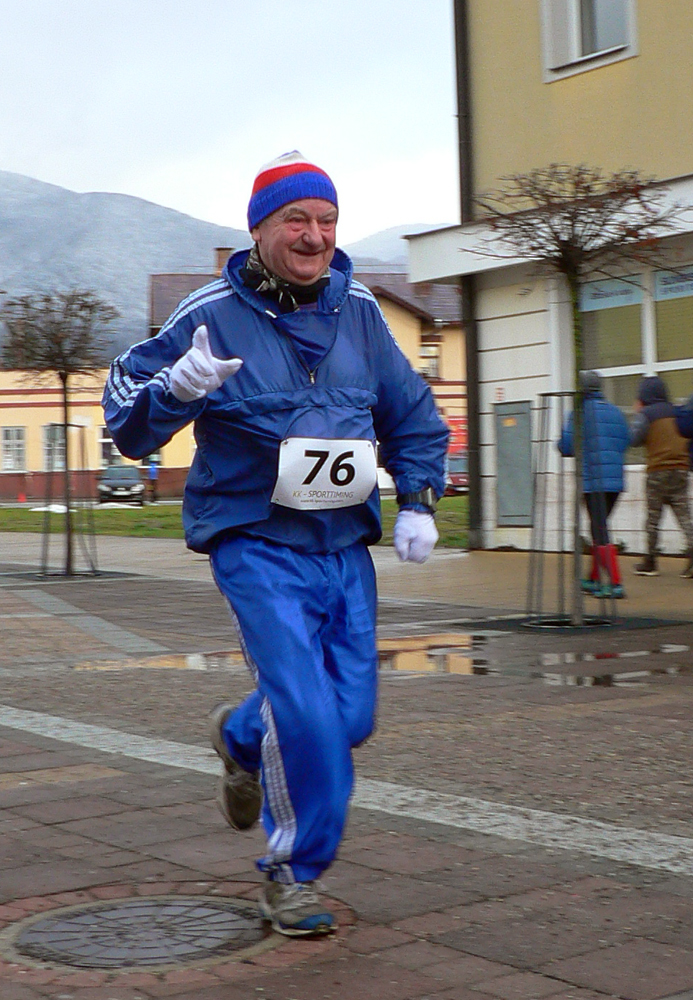 Počet „silvestrákov“ sa oproti vlaňajšku rozrástol tuším o jeden nový. Ale ten najstarší je len jeden. Vo Vrútkach sa bežalo už 38. raz. A na certifikovanej trati keby niečo - rovných 10 kilákov na päť kolečiek ako furt, to by si mali bežci vážiť. Aj tí, ktorí si netrúfajú po vianočných sviatkoch sa odvážiť. Ale o to tu (ako vždy) nejde, že? Perfektný servis, pritom štartovné len symbolické a Pan Pšeceda ešte aj počasie vybavil. V podstate opačné ako vlani – nočný dážď sa teraz zmenil na denné sneženie, čo je ten lepší variant. Lebo žiadna slizká čľapkanica pod nohami nebola, ako vlani. Po dávno minulom vianočnom snežení ostal na cestách len posyp a v zákrutách kaluže. Iba snehové prehánočky miestami pichali do očí a nárazy protivetra sa niekedy snažili tých ľahších sfúknuť z trate – najmä po obrátke a na ceste popri parku pred cieľovou rovinkou.