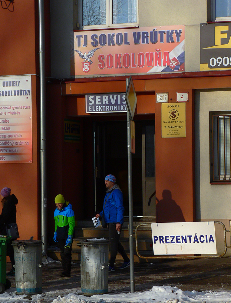 Organizácia tradične šliapala ako švajčiarske hodinky. Prezentačná šatňa v sokolovni je síce malá a bola tam poriadna tlačenka, ale odsýpalo to. Aj keď šóra sa chvíľku tiahla takmer až von zo sokolovne. Ale za to si bežci sami môžu, keď sa nevedia prihlásiť dopredu (a ešte by to mali aj lacnejšie). V telocvični miesta dosť na prevlek aj pokec. Každý nafasoval okrem čísla s čipom aj nejaký životabudič v plechovke, vraj to zrýchľovalo časy aspoň o minútu :-)