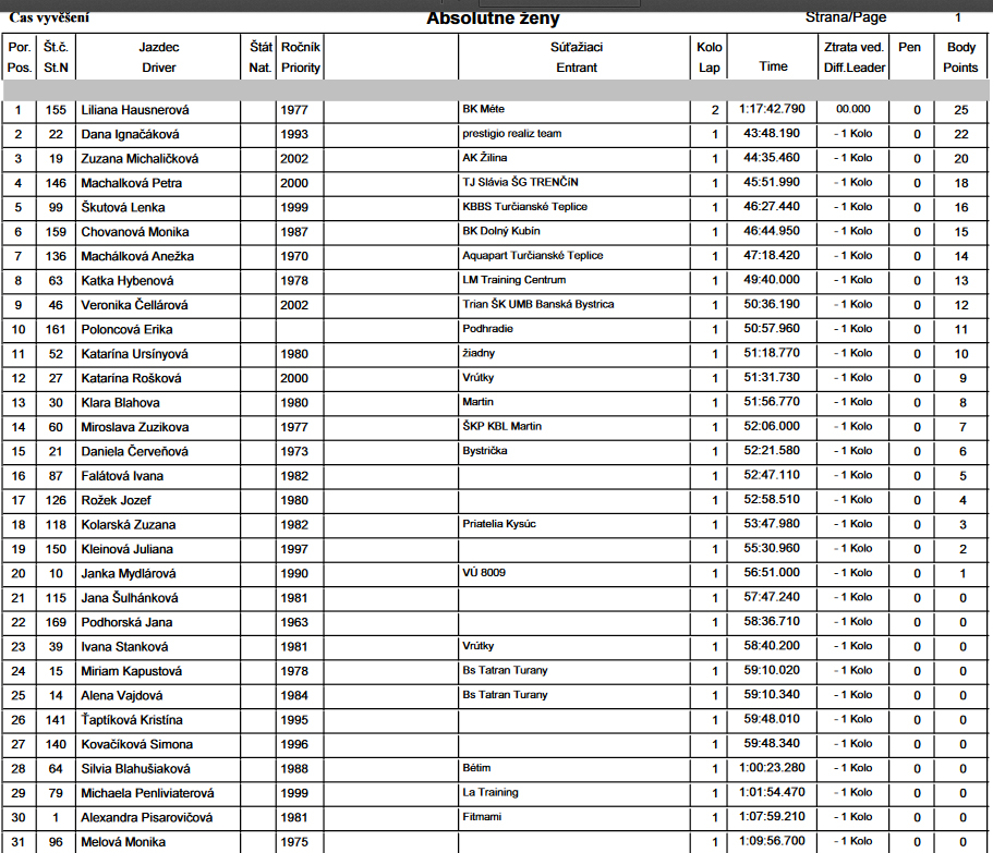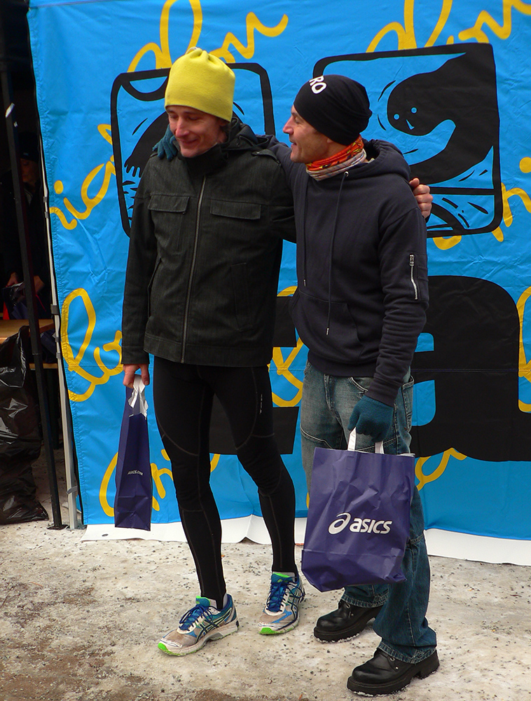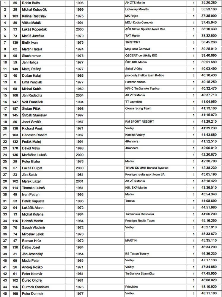 Počasie trochu dvihlo aj účasť oproti vlaňajšku – na štarte sa nazbieralo okolo 30 dievok a takmer stovka chlapov, takže slušná účasť. Tradične štartovali o 10:10, dávali prednosť emhádečke (tá prišla potom aj ku koncu trochu zavadzať). Päť certifikovaných kolečiek, rovná desina ako vždy. Pár minút pred dospelákmi ešte vyleteli na jedno kolo detiská. Tých tiež pekne pribudlo, 28 kusov v troch žiackych kategóriách. Zato skoro samí chalani, dievčatá len dve. Novinkou bolo, že tradičný víťaz posledných pár ročníkov Braňo Šarkan sa neukázal, takže sa šance chopili jeho tradiční prenasledovatelia.