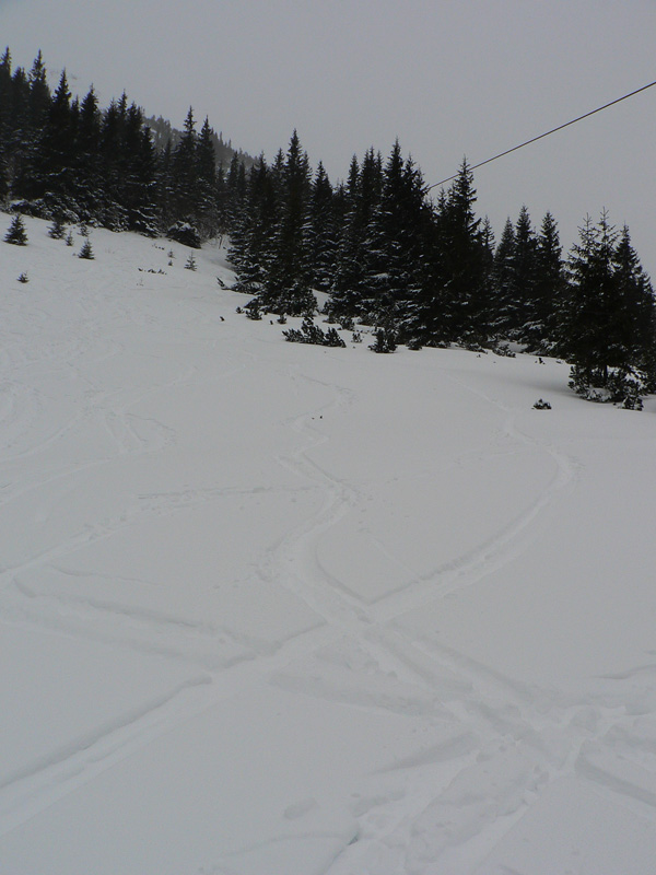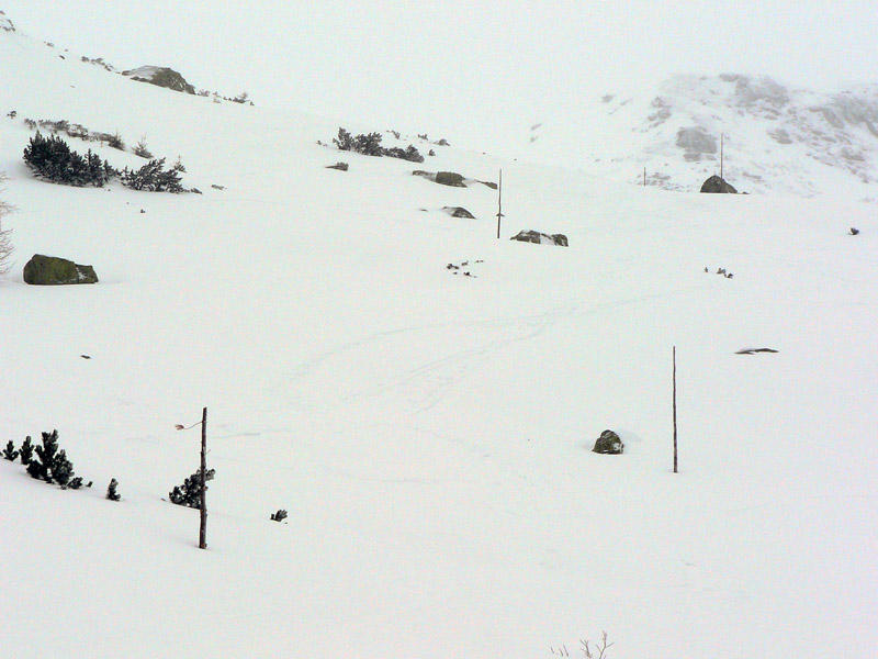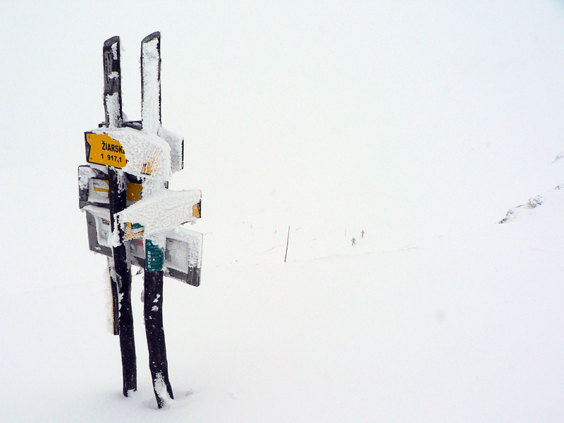 Žiarske sedlo bolo asi to jediné čo sa oplatilo, tam aspoň bolo vidieť tyčovanie. V sedle na prekvapenie fúkalo menej ako pod ním, ale lyžovačka smerom dolu nestála za nič: nebolo vôbec vidieť pod nohy a sem – tam sa ešte nejaký zákerný šuter spod snehu ozval.