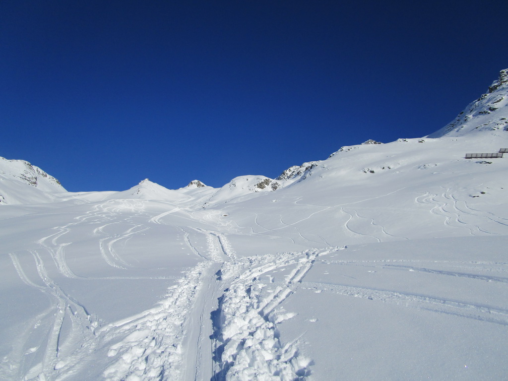 Skialpový Disneyland v oblasti Julierpassu sme na tejto stránku už popisovali mnohými článkami. Dnes sa vyberieme len na takú poobedňajšiu chuťovku. Vyrážame z parkoviska pri novej, čudesnej veži. Ideálne parkovisko na zatáčke kúsok nad Hospizom je totiž v sobotu na obed plné.