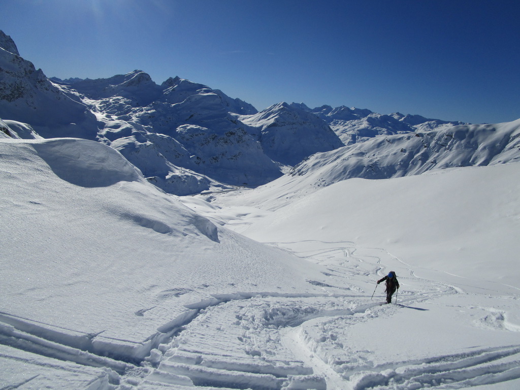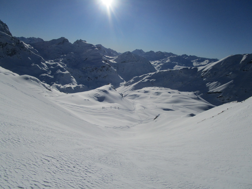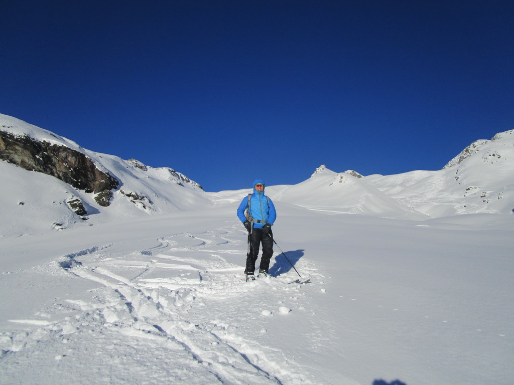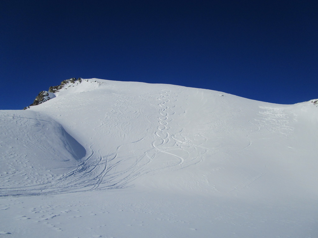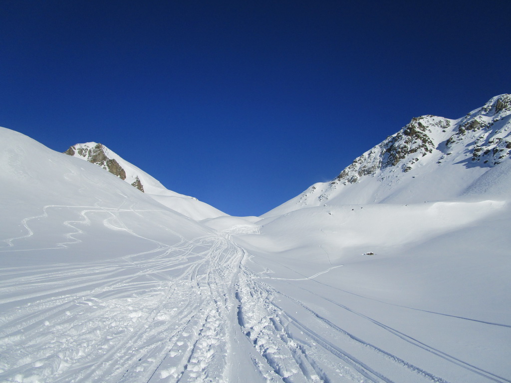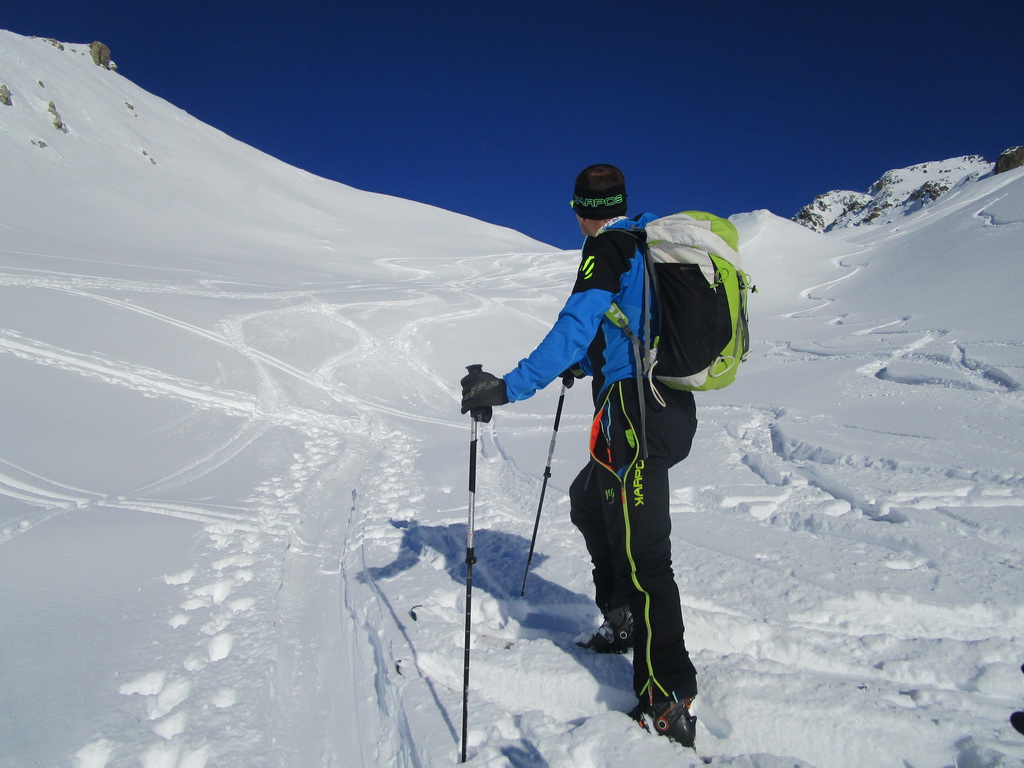 Pri zjazde si vyberáme nepolyžované svahy. Aj keď dnes tadiaľto už lyžovali desiarky lyžiarov, stále je z čoho vyberať. Keďže čas nás netlačí, tak si to pustíme ešte vpravo do ústia doliny Val dAgnel. V závere pohodového výletíku ešte musíme nalepiť pásy, aby sme sa krátkym výšlapom dostali naspäť ku autu, ale však aj šliapanie premrznutým panenským prašanom je radosť. O to väčšia, že je ešte len 15. december...