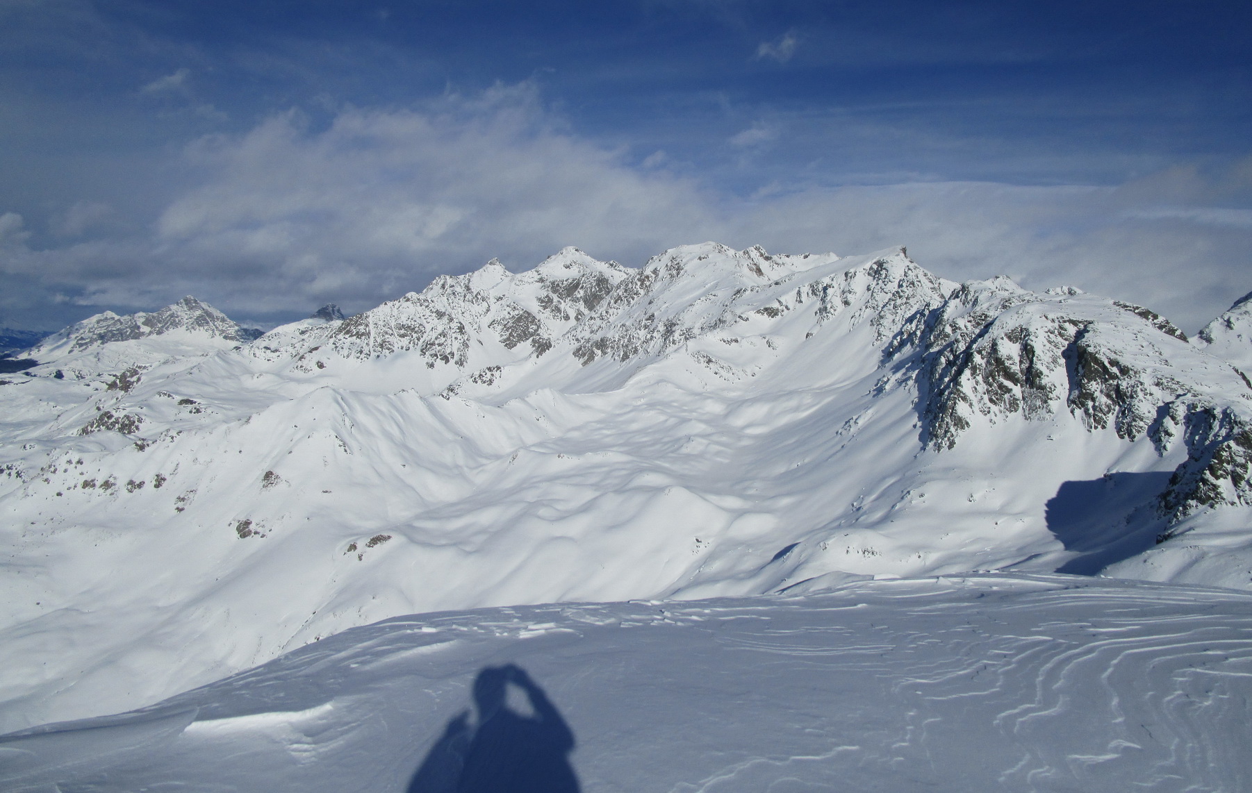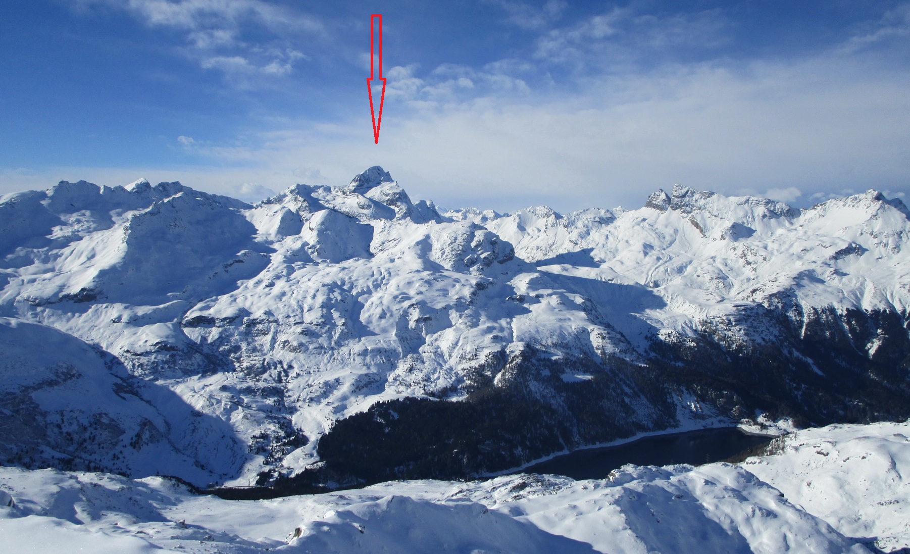 Púšťam sa do prvého zjazdu. Ďalším cieľom je Campagnung. Je to známy kopec. Taká tutovka ktorá sa dá ísť aj keď je veľa čerstvého snehu. Na vrchole sa nezdržujem. Odliepam hneď pásy a po krátkom zjazde znovu nalepujem. Čaká ma kopec s netypickým názvom: P3000, aspoň tak som to vyčítal v skialpovom sprievodcovi Engadinu. Je v ňom (sprievodcovi) ináč 400 vrcholových cieľov pre skialpinistov... hmm no iný kraj