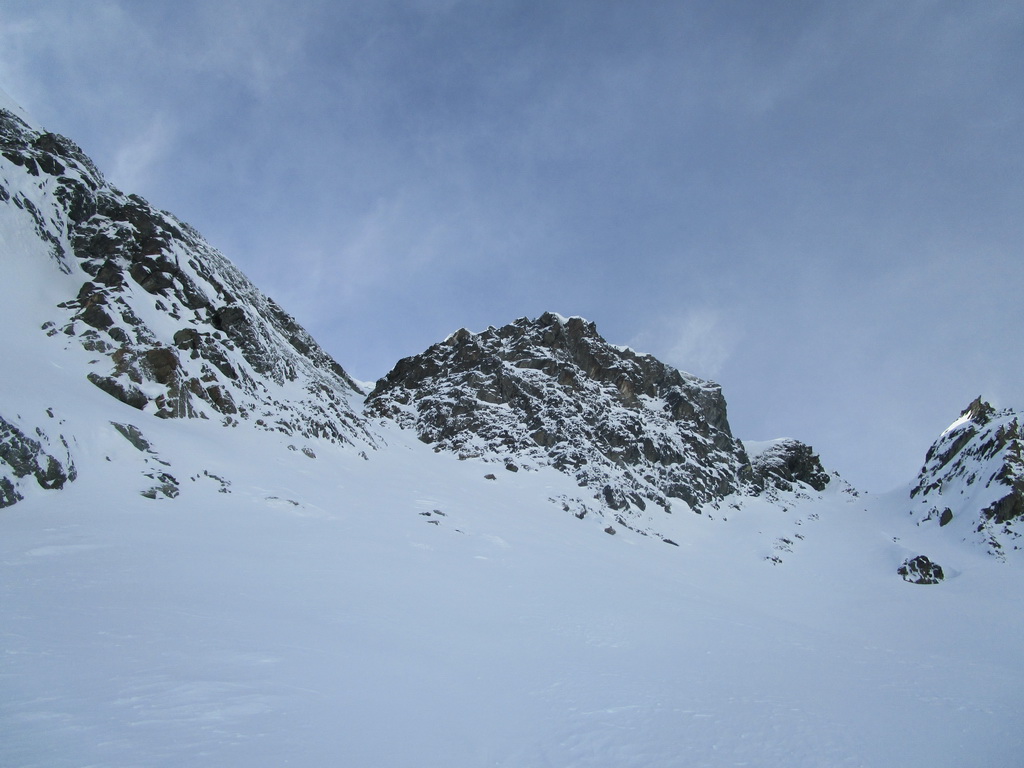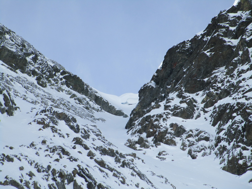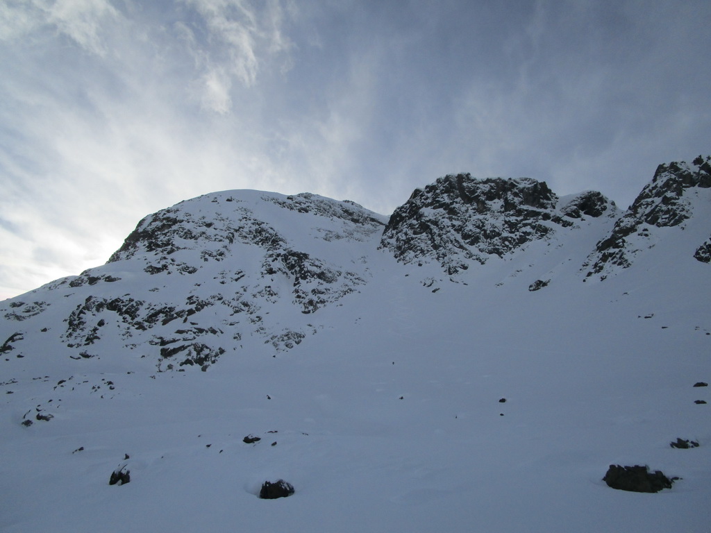 Na starom známom Péčku len vo vetre prebehnem cez vrchol a namierim si tu ku žľabu so severovýchodnou orientáciou. Už som si ho dlhšie obzeral. Zhora si ho zrentgenujem a usúdim, že budem dnes zdržanlivý...