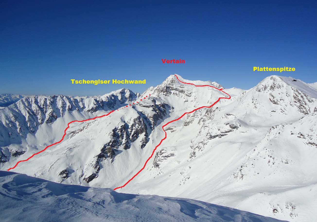 Táto zima nebola k jednej z najlepších skialpinistických oblastí v Alpách moc štedrá na sneh a tak som siahol do archívu a spracoval jednu z tých najkrajších túr aké táto oblasť v dobrých snehových podmienkach ponúka. Vertainspitze je krásny vyhliadkový kopec. Z jeho vrcholu sa pozeráte Ortleru priamo do tváre. Vidieť sa však dajú zaujímavé veci na všetky strany. Na Vertainspitze sa najčastejšie vystupuje a aj lyžuje naspäť dolinou Rozimtal zo Suldenu.