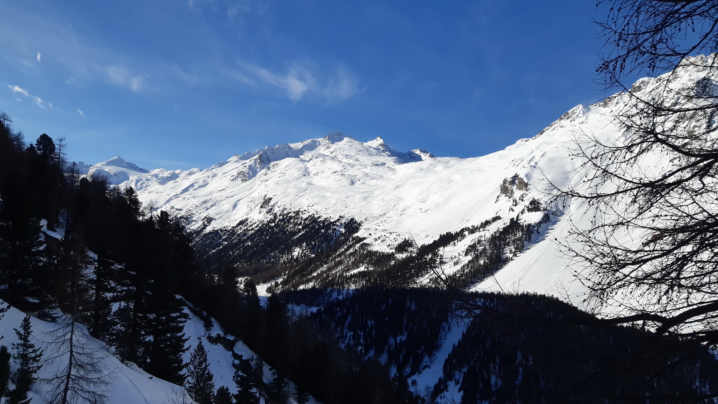Kto by chcel ísť s lyžami na Mandru z doliny Roseg, tak odporúčam ponoriť sa do terénu približne v miestach, kde bežecká stopa križuje cestu a nachádza sa tam miesto s krmelcami pre vtákov. Odtiaľto sa stúpa popri potoku, neskôr strmo vľavo hore, potom lúkou s ojedinelými stromami, a neskôr už nad pásmom lesa po nekonečných pláňach. Táto túra je pomerne bezpečná aj v zložitejšej lavínovke, a preto som si ju obľúbil hlavne v coronálnej zime 2021, keď veľa snežilo a fúkalo a snehová situácia bola nebezpečná.